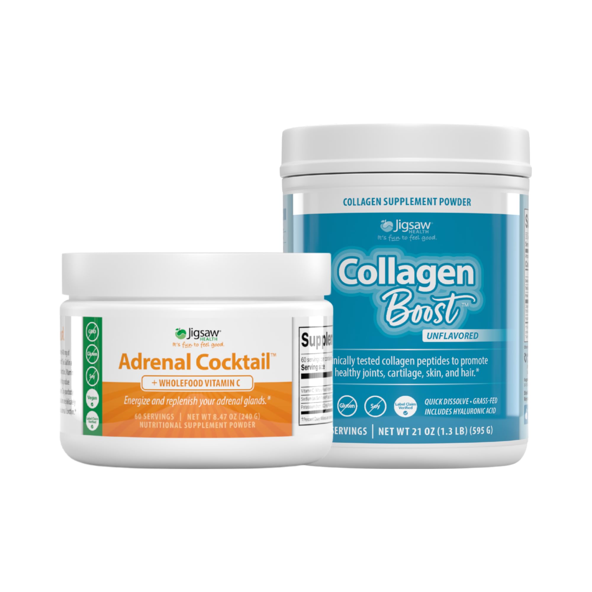 Jigsaw Health Bundle | Adrenal Cocktail 60 Servings (Jar) and Collagen Boost 30 Servings (Jar)