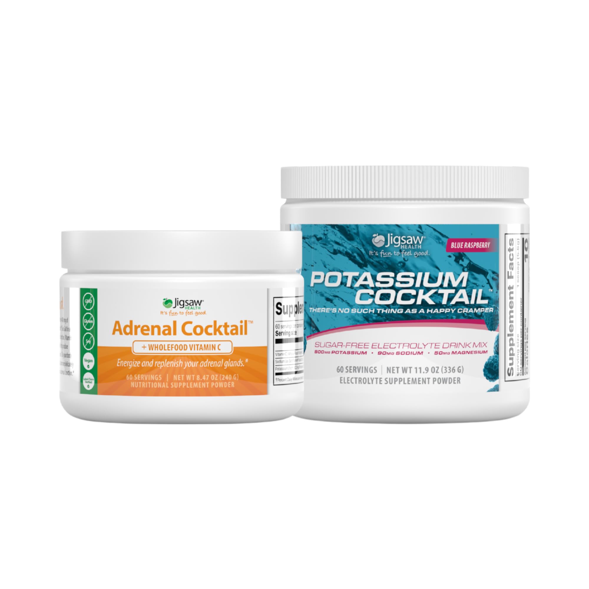 Jigsaw Health Bundle | Adrenal Cocktail 60 Servings (Jar) and Potassium Cocktail (Blue Raspberry) 60 Servings (Jar)
