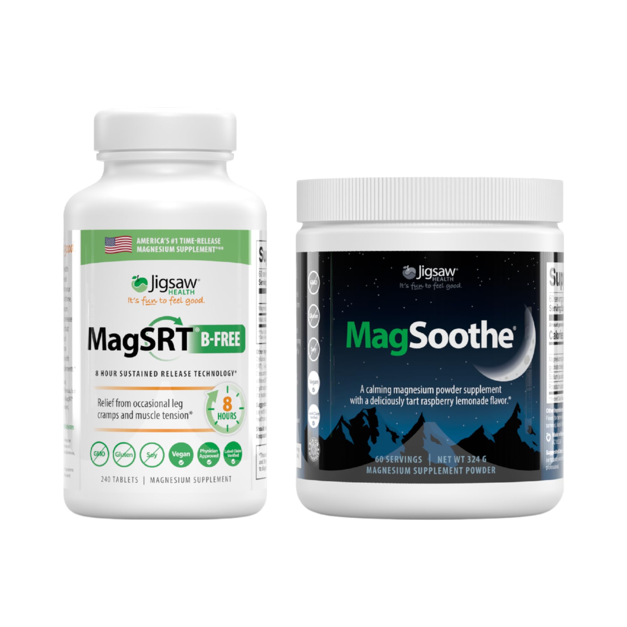 Jigsaw Health Magnesium Bundle | MagSRT (B-Free) 240 Tablets and MagSoothe (Raspberry Lemonade) 60 Servings (Jar)