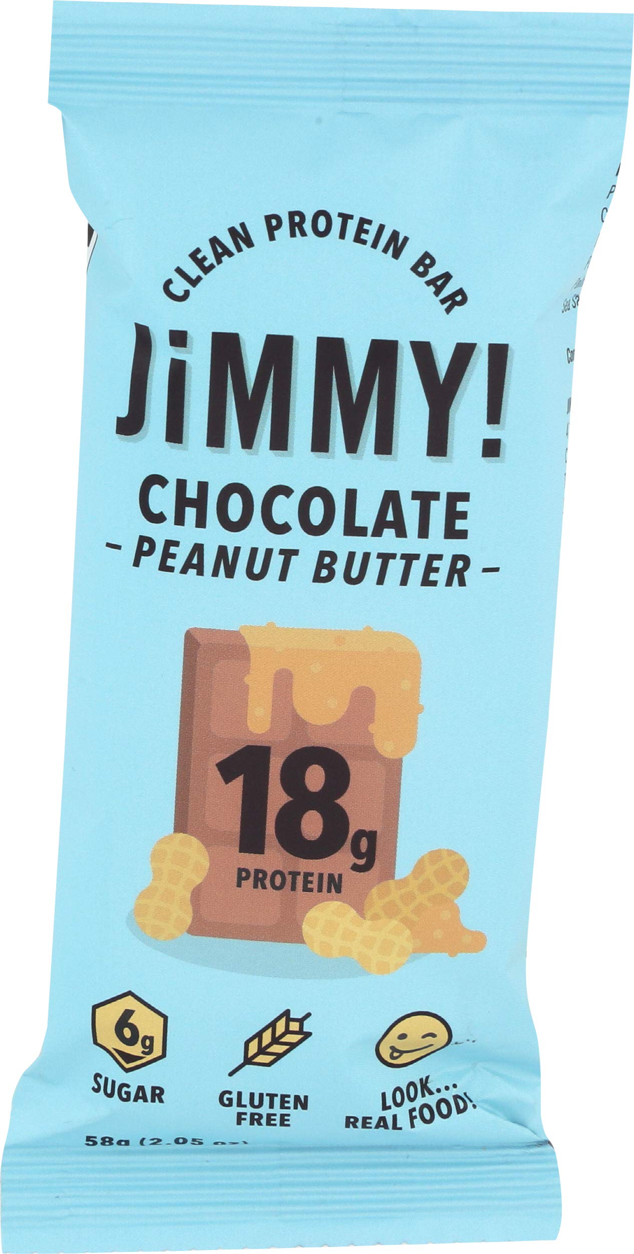 REAL INGREDIENTS TOTALLY CLEAN: JiMMYBARS! are clean and gluten free and are made with natural, real food ingredients that create a crunchy texture that will satisfy your cravings. SATISFYING MEAL REPLACEMENT: JiMMY! Clean Protein Bars will give you an energy boost and keep you full for up to 6 hours to fuel your active lifestyle. LOW SUGAR PROTEIN BAR: Each Chocolate Peanut Butter Protein Bar has only 6g of sugar and 270 calories and is packed with 18g of soy and whey protein blend per serving. CRISPY TOTALLY DELICIOUS: Our crispy Chocolate Peanut Butter Bar is made with real peanut butter, chocolate and peanuts making the perfect anytime snack with a satisfying crunch. TRY A JiMMY! SAMPLE BAR: The search for your new go-to protein bar is over. Sample a JiMMYBAR and taste for yourself. Includes (1) Chocolate Peanut Butter Protein Bar.