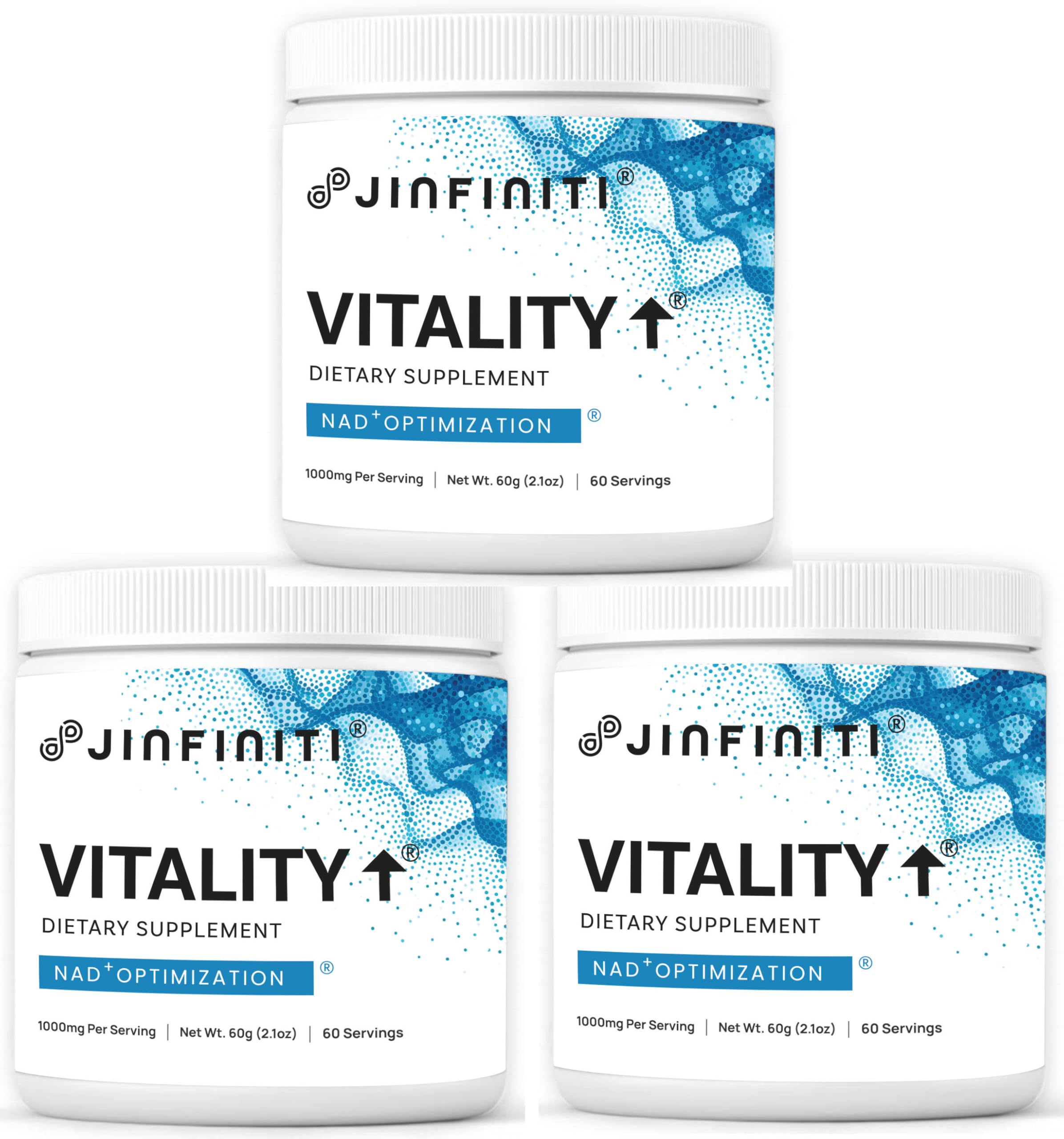 Jinfiniti Vitality? NAD Optimization is a carefully formulated dietary supplement designed to provide key NAD precursors and complementary nutrients. NAD is a naturally occurring coenzyme found in the body and is involved in normal cellular processes. This powder formula combines four naturally derived ingredients selected for quality, purity, and compatibility. The product is intended to complement a balanced diet and healthy lifestyle. Jinfiniti formulations are developed by a scientific team using evidence-based ingredient selection, precise dosing, and quality manufacturing standards. This product is not intended to diagnose, treat, cure, or prevent any disease.