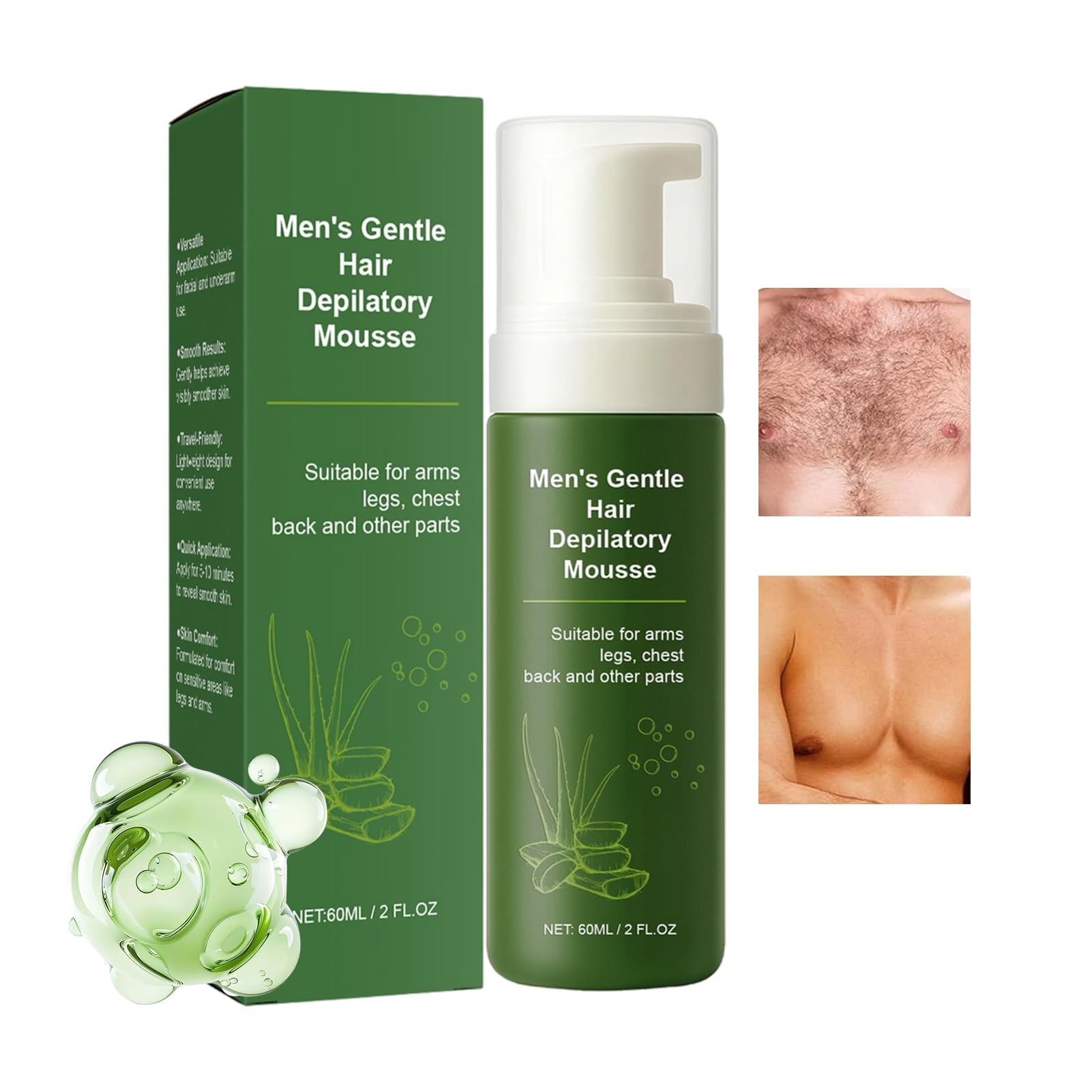 Intimate hair removal cream offers a gentle solution for removing unwanted hair in sensitive areas such as the genitals, underarms, arms, legs, thighs, and face. This 60ml hair removal lotion is suitable for both men and women, making it ideal for fathers, partners, or anyone looking for effective hair removal. The cream works like a shampoo, making it easy to use and providing reliable results. Ideal for sensitive skin, this cream offers a comfortable way to achieve smoothness without irritation. Use it confidently on different parts of the body for a clean and fresh feeling every day. Features: Name: Hair Removal Cream for Men Capacity: 60ml Note: Due to differences in screen and lighting, the item's color may be slightly different from the picture. Measurements are taken by hand, so the sizes indicated may vary by 1 to 2 cm. Product list: 1 men's hair removal cream SAFETY WARNING Not applicableFast-acting hair removal formula: This men's hair removal cream with a fast-acting formula softens unwanted hair particularly quickly and rinses off easily in just 58 minutes. Skin is left smooth and clean to the touch, allowing for an effortless grooming routine for active lifestyles. Effective hair removal ensures a pleasant, hassle-free feeling on the skin, ideal for daily use during sports activities or on the go. Effective moisture retention: Enriched with natural extracts, this men's hair removal cream effectively retains moisture, preventing dryness and irritation and promoting soft, refreshed skin, perfect for maintaining healthy results after hair removal at home or on the go. It intensely moisturizes, protects against skin tightness, and leaves skin smooth, making it a reliable choice for hair removal. Gentle skin protection: This men's hair removal cream offers gentle protection for sensitive skin areas, ensuring minimal irritation and preventing discomfort, while keeping skin moisturized and supple during your daily shaving routine. Ideal for men seeking a smooth result without redness or irritation, and who want reliable care for sensitive areas to keep their skin healthy and well-groomed. Easy full-body care: Designed as a one-stop solution for complete hair removal, this men's grooming product works effectively on the chest, back, and face. The adaptive multi-zone functionality simplifies daily routines and ensures everyday convenience by delivering reliable performance when removing hair from different areas. Fast and even coverage: This men's hair removal cream offers a user-friendly foam spray application that provides even coverage and effectively removes unwanted hair. It streamlines your grooming routine for a clean and tidy appearance without clutter. Perfectly suited for use at home or while traveling to ensure reliable hair removal anytime. The time-saving process promotes an effortless daily life.JINGLING Crème d'épilation pour homme - 60 ml - Crème naturelle pour l'épilation pour hommes - Pour joues, aisselles, bras, jambes, cuisses, visage, bikiniDESCRIPTION DU PRODUIT DESCRIPTION DU PRODUIT La crème dépilatoire intime offre une solution douce pour éliminer les poils indésirables dans les zones sensibles telles que les zones intimes, les aisselles, les bras, les jambes, les cuisses, le visage et Cette lotion dépilation de 60 ml convient aussi bien aux hommes qu'aux femmes, ce qui le rend idéal pour les pères, les partenaires ou toute personne à la recherche d'une épilation efficace. La crème démaquillante fonctionne comme une application de shampooing, ce qui la rend facile à utiliser et donne des résultats fiables. Idéale pour les peaux sensibles, cette crème offre un moyen confortable d'obtenir une douceur sans irritation. Utilisez-les en toute confiance sur différentes parties du corps pour une sensation de propreté et de fraîcheur chaque jour. Caractéristiques : Nom : crème dépilatoire pour homme Capacité : 60 ml. Remarque : En raison des différences dues à l'écran et à l'éclairage, la couleur de l'article peut être légèrement différente de celle de la photo. Les mesures étant prises à la main, les tailles indiquées peuvent varier de 1 à 2 cm. Liste des produits : 1 crème dépilatoire pour homme AVERTISSEMENT DE SÉCURITÉ Non applicableFormule dépilatoire rapide : cette crème dépilatoire pour homme avec une formule à action rapide adoucit les poils indésirables particulièrement rapidement et se rince facilement en seulement 58 minutes. La peau est lisse et propre au toucher, ce qui permet une routine de soin sans effort pour des modes de vie actifs. L'épilation efficace assure une sensation agréable sur la peau sans tracas, idéale pour une utilisation quotidienne lors d'activités sportives ou en déplacement. Rétention efficace de l'humidité : la crème dépilatoire pour homme enrichie en extraits naturels assure une rétention efficace de l'humidité, prévient la sécheresse et les irritations et favorise une peau douce et rafraîchissante, parfaite pour maintenir des résultats sains après l'épilation à la maison ou en déplacement. Elle hydrate intensément, protège contre les tensions de la peau et laisse une peau lisse, ce qui en fait un choix fiable pour l'épilation. Protection douce de la peau : la crème dépilatoire pour homme offre une protection douce pour les zones sensibles de la peau, garantit une faible irritation et évite l'inconfort, tout en gardant la peau hydratée et souple dans votre routine de rasage quotidienne. Idéal pour les hommes qui recherchent un résultat lisse sans rougeurs ni irritations et qui recherchent un soin fiable pour les zones sensibles afin de garder leur peau saine et soignée. Soins du corps entier faciles : conçu comme une solution unique pour une épilation complète, ce produit de soin pour homme agit efficacement sur la poitrine, le dos et le visage. La fonctionnalité multi-zones adaptative simplifie les procédures quotidiennes et assure la commodité quo