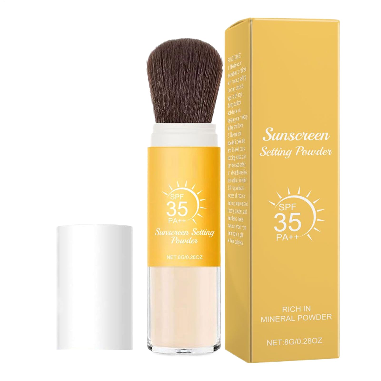 A portable mineral powder sunscreen designed for everyday comfort and protection. This compact travel size offers a lightweight, buildable formula with long-lasting oil control. The breathable matte finish is suitable for sensitive and oily skin, making it perfect for use under makeup, during exercise, or while working out. It applies easily to the scalp, hair, and body. Net Contents: 8g List: 1 x SPF Setting Powder Note: Due to lighting effects during photography and different monitor settings, the product colors in the image may differ slightly from the actual product. Please allow for a 1-2 cm difference in measurements due to manual measurement. SAFETY WARNING Not Applicable