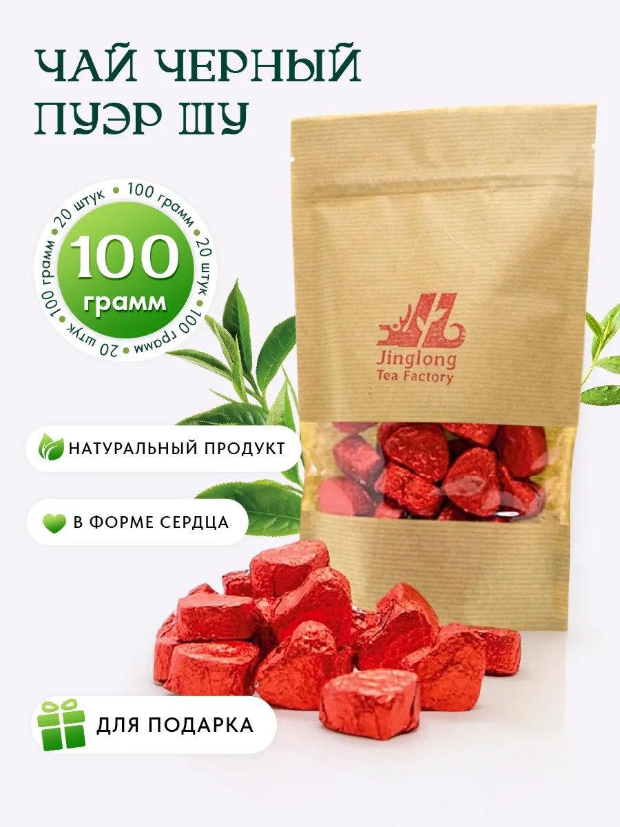 Jinglong Tea Factory Чай Черный Пуэр Шу Мини Сердечки Прессованный 100гр