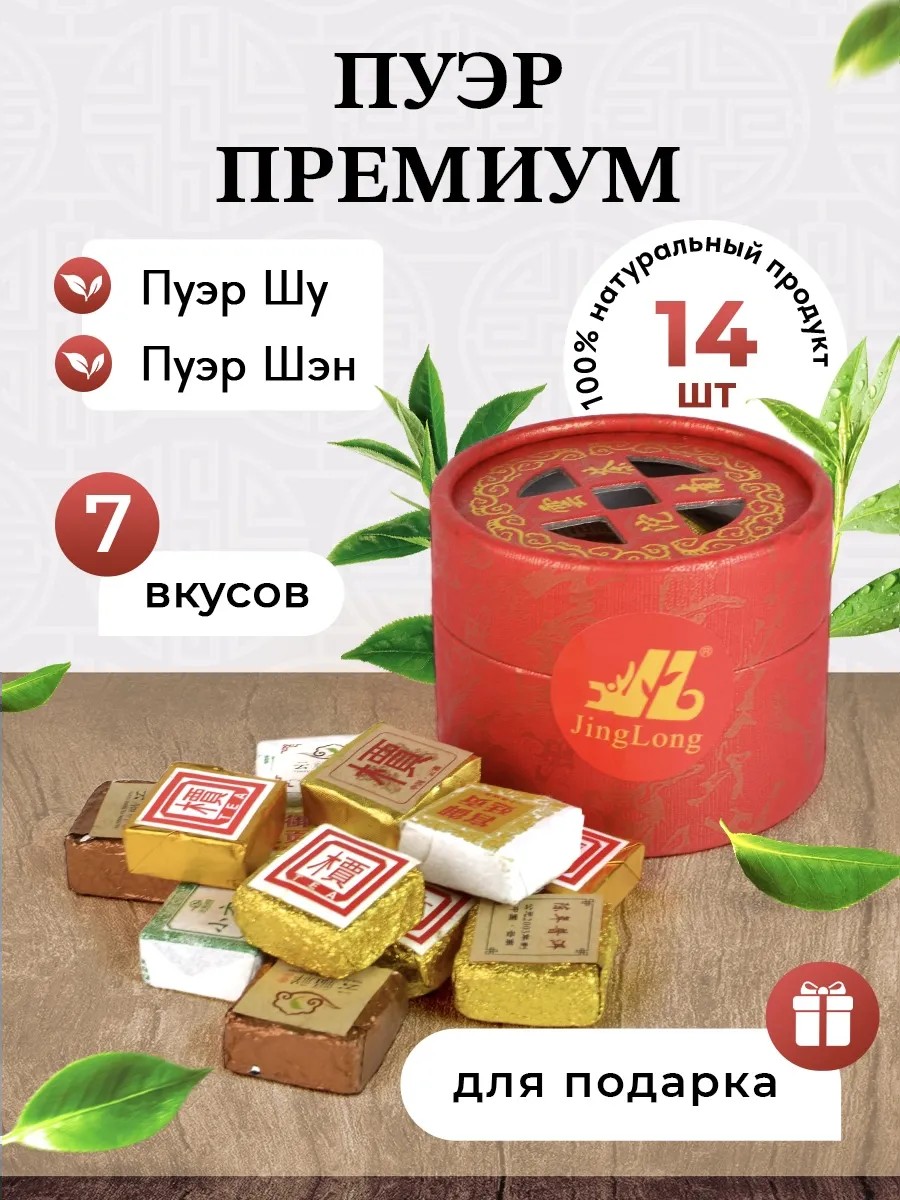 | Состав | Пуэр шу; чай прессованный; Подарочная баночка; пуэр шен |