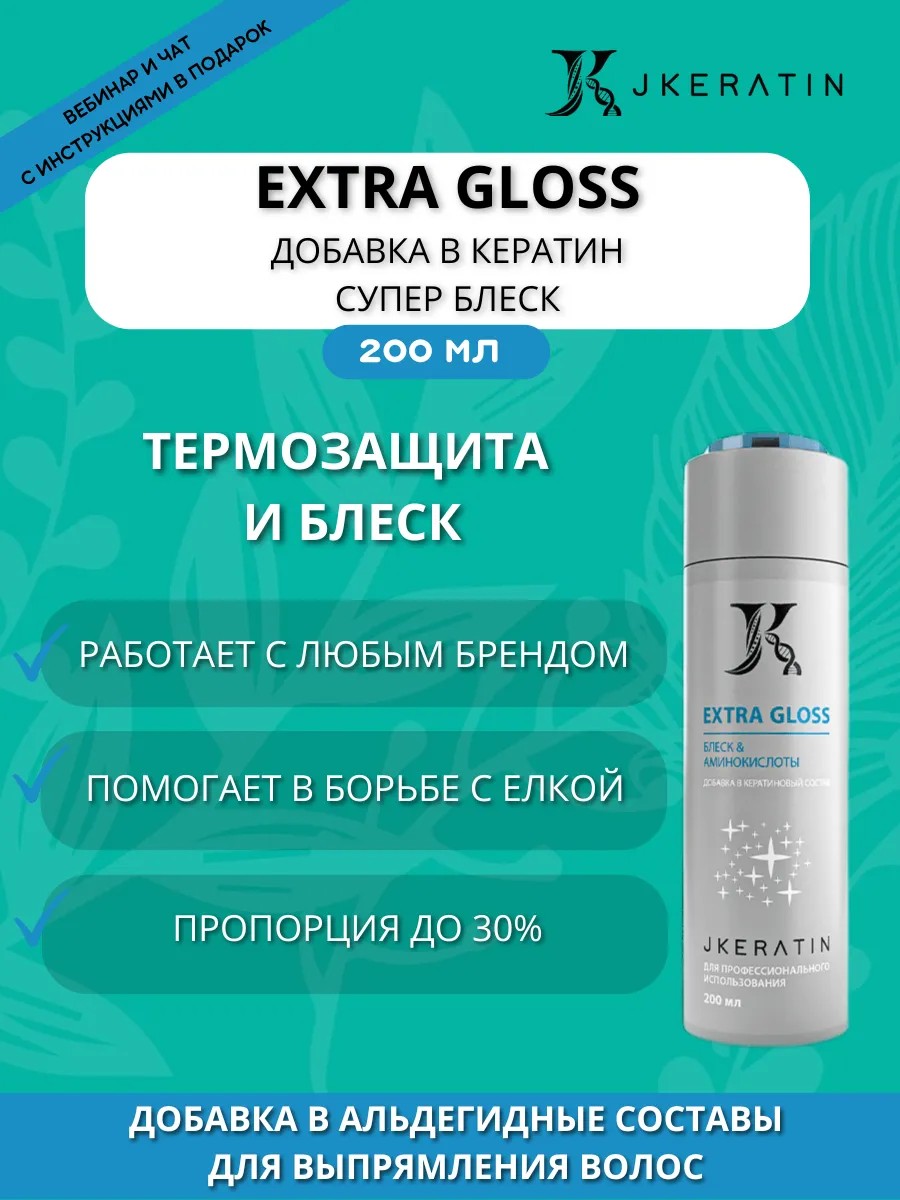 Профессиональный продукт Extra Gloss 200 мл JKeratin добавляется в кератин, ботокс любых брендов для увеличения блеска и термозащитных свойств составов.