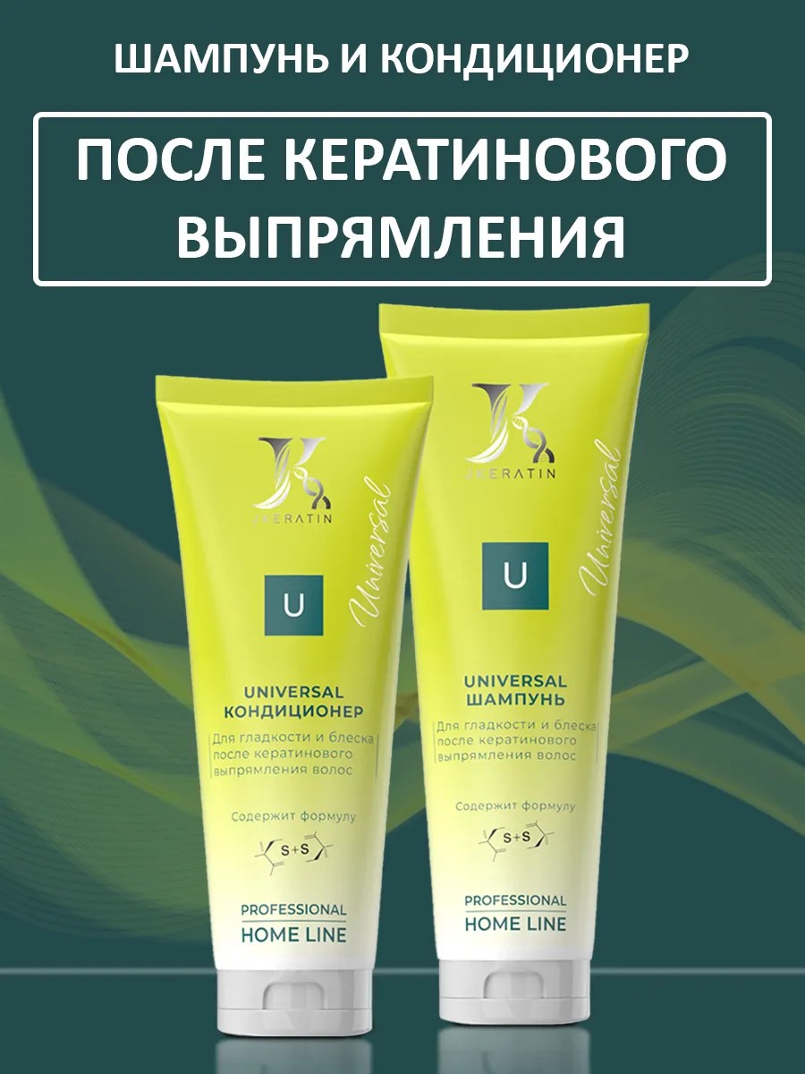 Профессиональный шампунь и кондиционер JKERATIN UNIVERSAL создан специально для ухода за волосами после кератинового выпрямления и ботокса волос. Бережно очищает и укрепляет структуру волоса, благодаря входящим в состав аминокислотам и касторовому маслу. Шампунь и кондиционер идеально подходит для ежедневного использования для волос после кератина, ботокса и нанопластики. Укрепляет структуру, уплотняет стержень волоса, разглаживает и увлажняет. Придает шелковистость и естественный блеск, насыщая кератином и аминокислотами, питая и увлажняя волосы от корней до самых кончиков. Существенно продлевает эффект процедуры кератинового выпрямления и ботокса. Шампунь для кератиновых волос объемом 250 мл., кондиционер 200 мл. - для равномерного расхода!