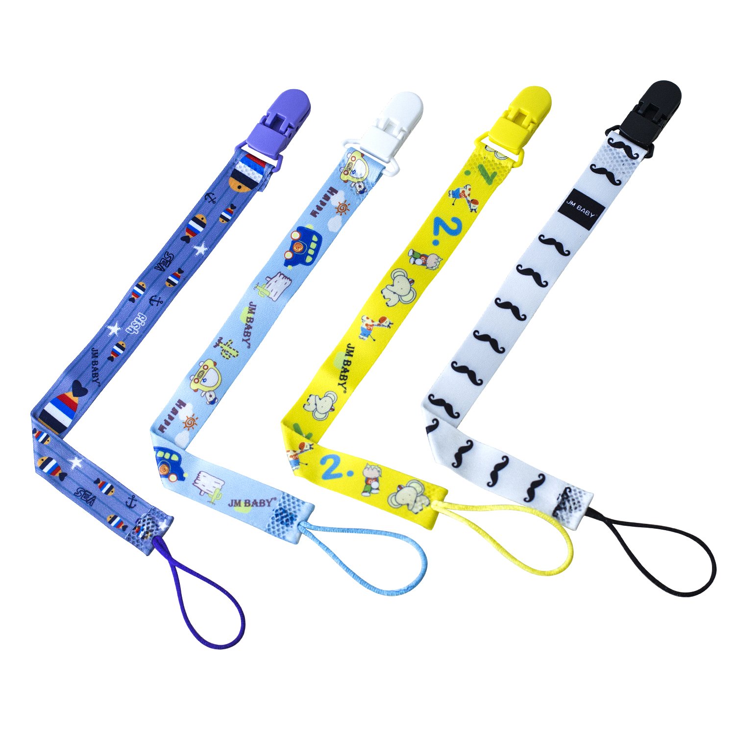 International Products Have separate Terms, Are Sold from Abroad and May Differ from Local Products, Including Fit, Age Ratings, and Language of Product, Labeling or Instructions.?100% money-back guarantee? Customer satisfaction comes first.We offer you the 100% money back guarantee, please do not hesitate to buy, no more worry.?Unique double-sided design? Our pacifier clips have a nice two-sided stylish design, and they are also colorful and bright. Perfect for newborns, boys and girls.Perfect gift for the baby shower.?High quality? Our cute pacifier clips are made of BPA-free plastic closure, no sharp edges, rusting or discoloration, so that you don't have to worry about metal allergy.The pacifier clip is also strong and durable, but keeps gently enough against your baby's train so as not to damage your clothes.The pacifier holder consists of washable, durable, comfortable, comfortable material, which is gently to clothing and skin.Multifunctional clip: Our beautiful pacifier clips are not only perfect for pacifiers, pacifiers or pacifiers, you can also stick to bite rings, biting toys, baby bitches, baby ceilings, beak cups and more.Can not only be attached to your baby's clothing, but also perfect for car seats and strollers.?Safe for your baby? Corresponds to the US and European security standards, BPA-free, no phthalate, no lead.The BPA-free plastic clips prevent damage to clothing, do not worry about metal allergy. International products have separate terms, are sold from abroad and may differ from local products, including fit, age ratings, and language of product, labeling or instructions.?100% Geld-zurück-Garantie?Kundenzufriedenheit steht an erster Stelle. Wir bieten Ihnen die 100% Geld-zurück-Garantie, bitte zögern Sie nicht, zu kaufen, keine Sorge mehr. ?Einzigartiges doppelseitiges Design?Unsere Schnuller-Clips haben ein schönes zweiseitiges stilvolles Design, und sie sind auch bunt und hell. Perfekt für Neugeborene, Jungen und Mädchen. Perfektes Geschenk zur Babyparty. ?Hohe Qualität?Unsere niedlichen Schnuller-Clips sind aus BPA-freiem Kunststoff-Verschluss, keine scharfen Kanten, rosten oder verfärben, so dass Sie sich keine Sorgen um Metallallergie machen müssen. Der Schnuller-Clip ist auch stark und langlebig, hält gegen den Zug Ihres Babys aber sanft genug, um seine Kleidung nicht zu beschädigen. Der Schnullerhalter besteht aus abwaschbarem, strapazierfähigem, bequemem Material, das sanft zu Kleidung und Haut ist. Multifunktionaler Clip: Unsere schönen Schnuller-Clips sind nicht nur perfekt für Schnuller, Schnuller oder Schnuller, sie können auch an Beißringen, Beißspielzeug, Baby-Lätzchen, Babydecken, Schnabeltassen und mehr halten. Kann nicht nur an der Kleidung Ihres Babys befestigt werden, sondern auch perfekt für Autositz und Kinderwagen. ?Sicher für Ihr Baby?Entspricht den US-amerikanischen und europäischen Sicherheitsstandards, BPA-frei, kein Phthalat, kein Blei. Die BPA-freien Kunststoffklammern verhindern Schäden an der Kleidung, keine Sorge um die Metallallergie.JM Baby Schnuller-Clip Schnullerband Halter, mehrfarbig, waschbar, mit einzigartigem zweiseitigem Design, für Neugeborene, Jungen und Mädchen, 4 Stück