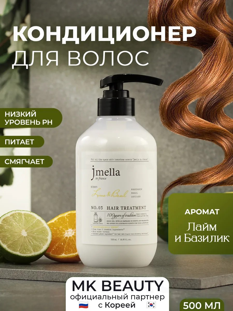 Jmella In France Lime & Basil Hair Treatment, a nourishing conditioner mask with the scent of mandarin, lime, basil, and vetiver, normalizes the condition of hair and scalp after cleansing. It moisturizes and soothes, creates a weightless protective shell on the hair, and smoothes the hair cuticle.