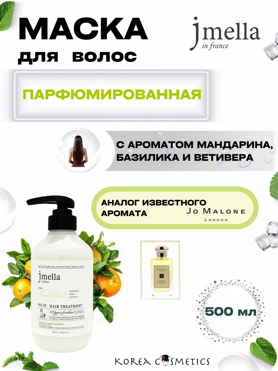 Погрузитесь в мир французской утонченности и невероятного ухода за волосами с парфюмированной маской JMELLA IN FRANCE LIME & BASIL HAIR TREATMENT. Эта маска-бальзам сочетает в себе роскошный аромат лайма и базилика с высокой эффективностью, даря вашим волосам свежесть и силу. В составе используется запатентованный органический экстракт листьев лесной земляники, комплекс из 17 аминокислот, пантенол и коллаген. Маска Джимелла эффективно питает волосы, повышает их эластичность и гладкость, способствует восстановлению повреждённой структуры. Входящие в состав компоненты, такие как пантенол и коллаген, улучшат качество волос, предотвратят разрушения, оказываемые агрессивными факторами окружающей среды, химическим, термическим и механическим воздействием. Аромат маски вдохновлен парфюмом Lime Basil & Mandarin от Jo Malone. Это современный и яркий аромат, сочетающий цитрусовые и древесные нотки, обладает одновременно свежей и душистой композицией. Верхние ноты аромата включают мандарин, средние ноты — базилик, а базовая нота — ветивер. Все вместе они подарят вашим волосам необыкновенную свежесть, бодрящую, пикантную и всегда непредсказуемую.