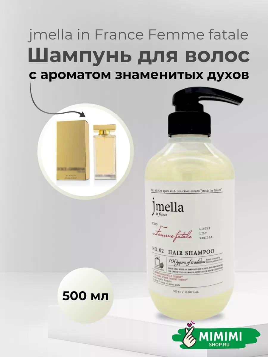 Деликатный очищающий шампунь с ароматом личи, лилии и ванили с низким уровнем pH бережно очищает волосы и кожу головы, дарит волосам потрясающий изысканный аромат «Femme Fatale» и ослепительную красоту. Шампунь включает бетаин, алоэ и растительные экстракты центеллы, клубники и хауттюйни, которые в комплексе укрепляют и восстанавливают волосы, оказывают антиоксидантную защиту и препятствуют ломкости и разрушению структуры.