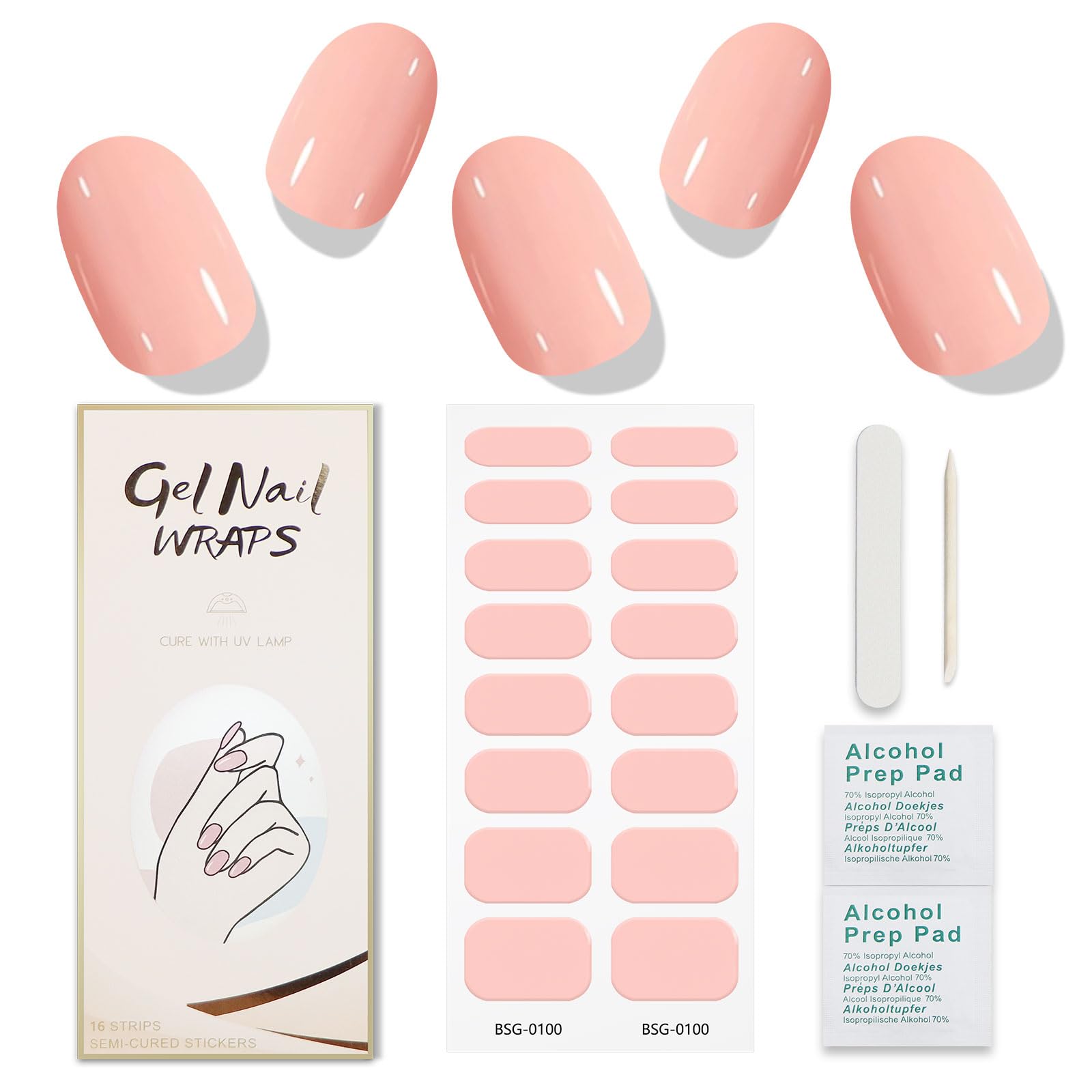 JMEOWIO Semi Cured Gel Nail Strips Cream Orange Pink Gel Nail Stickers Nail Supplies Nail Art Design Decoration Accessories