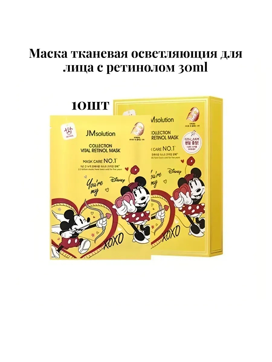 JMSolution Маска тканевая осветляющия для лица с ретинолом Disney Collection Vital Retinol Mask 30ml*10шт