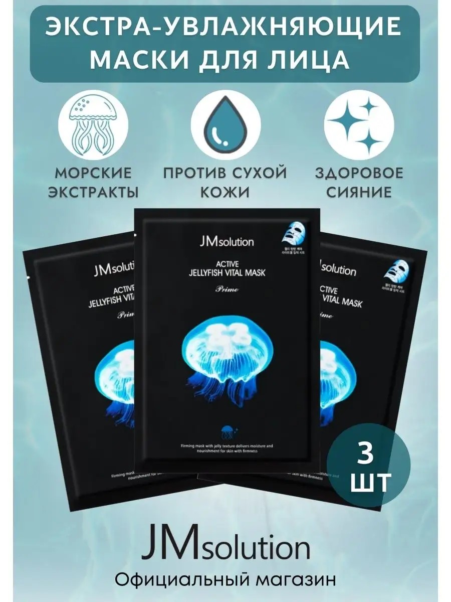 Набор масок для лица JMsolution 3 шт . Маски тканевые обладают широким спектром эффектов, благодаря чему достигается заметный и стойкий результат. Маска тканевая для лица интенсивно увлажняет и питает клетки эпидермиса, восстанавливает гидро-липидный барьер, укрепляет тургор и замедляет процессы старения. Сыворотка эссенция в составе маски для лица придает упругость, подтягивающее разглаживание, против раздражения, противовоспалительное. Омолаживание и восстановление кожи лица, против акне, прыщей, против морщин. Борьба с несовершенствами.