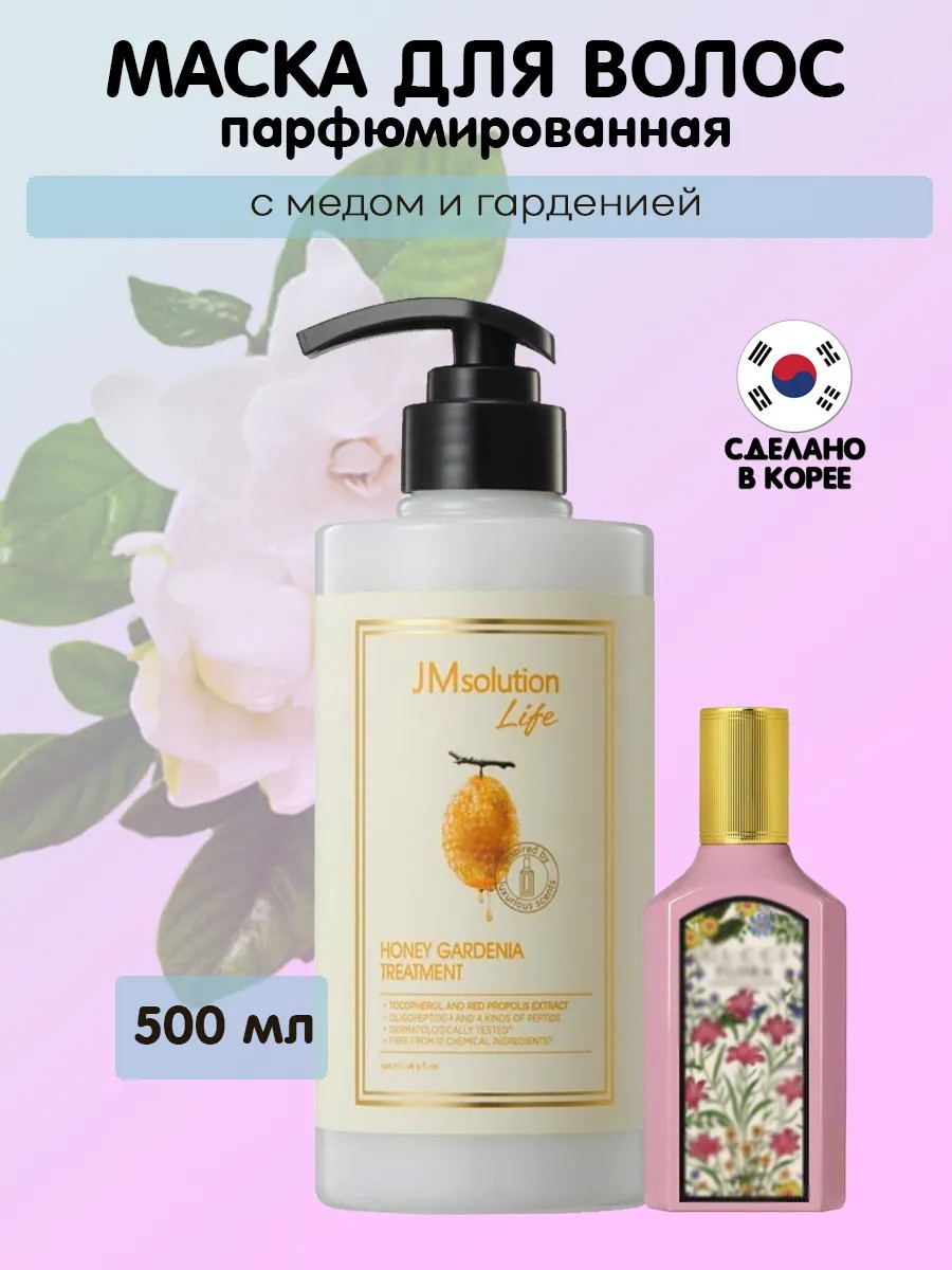 JM SOLUTION HONEY GARDENIA Маска для волос 500 мл питанельная с медом и прополисом и аргановым маслом для всех типов волос - это корейский уход, восстановление, блеск.