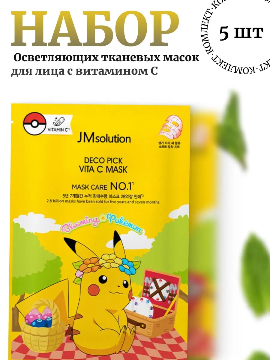 | Комплектация | JMsolution Комплект 5 шт Осветляющая маска-салфетка с витамином С (Пикачу) Deco Pick Vita C Mask |