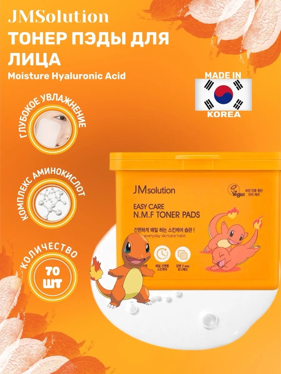 Тонер пэды для лица JMSolution Toner Pad Easy Care Nmf — это уникальный продукт для ухода за кожей. Он сочетает в себе высокое качество и привлекательный дизайн с персонажем из вселенной Покемонов. Вдохновленный заботой о здоровье и внешнем виде кожи, они созданы для эффективного увлажнения и питания.