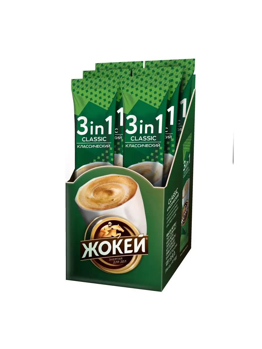 Кофе 3 в 1 в пакетиках Жокей классический - это идеальный выбор для тех, кто ценит удобство и качество. Мягкий вкус этого кофе, благодаря слабой степени обжарки, подарит вам приятное пробуждение и заряд бодрости на весь день. Упаковка из 10 пакетиков позволяет насладиться любимым напитком в любой ситуации, будь то дома, на работе или в дороге. Просто добавьте горячую воду, и через несколько минут вы сможете насладиться ароматным и вкусным кофе. Кофе растворимый в пакетиках это быстрый и простой способ побаловать себя любимым напитком без лишних хлопот.