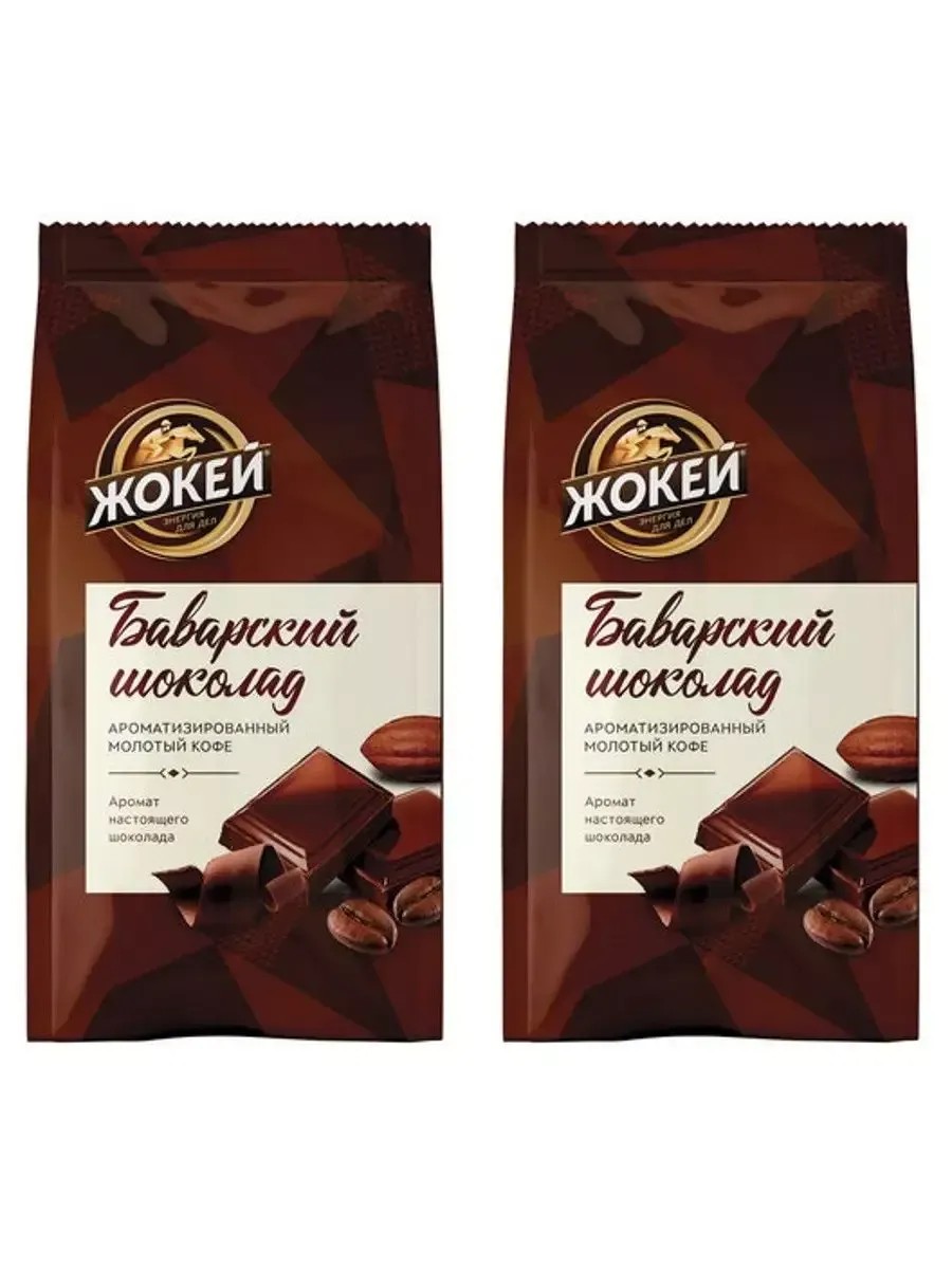 Jockey, Bavarian Chocolate Ground Coffee. 2 packages of 150 grams each. Jockey Bavarian Chocolate Ground Coffee is a flavored blend of 100% Brazilian Arabica. Dark roasted coffee beans give your drink a velvety taste and a rich, deep aroma. Distinctive notes of famous Swiss chocolate perfectly complement the coffee, transforming it into an expensive and elite product. Recommended for brewing in a cup, Turkish coffee pot, geyser coffee maker, or French press. To prepare one serving, you will need 2 teaspoons of coffee and 180 ml of water. Vacuum packaging preserves all the organoleptic properties of the product, but after opening, it is recommended to transfer the contents to a container with an airtight lid.