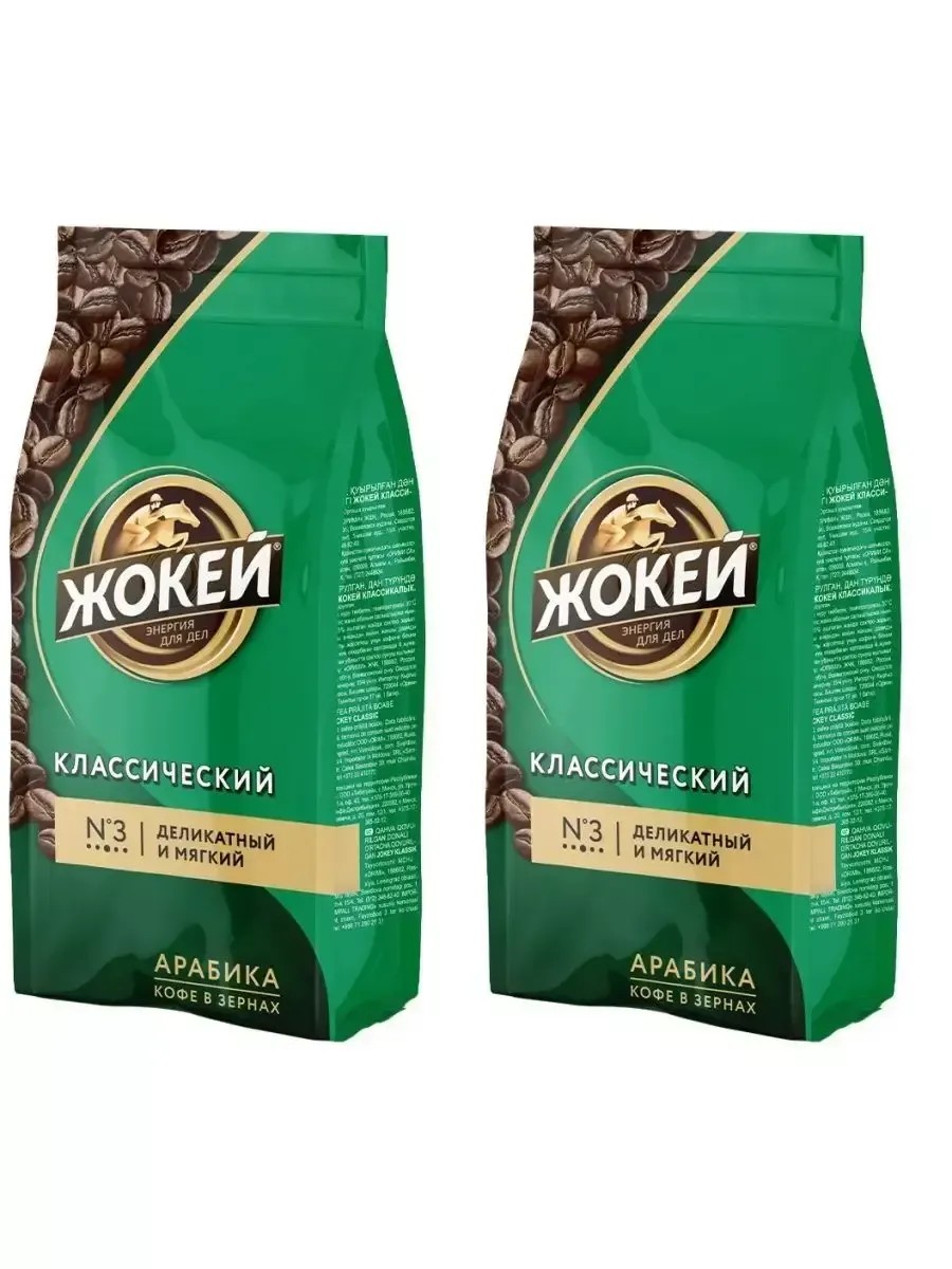 Жокей, Кофе Классический в зернах. Комплект из 2 штук. Общий вес комплекта 500 г.Жокей Классический обладает мягким, утонченным вкусом и богатым ароматом. Правильный выбор лучших сортов Арабики из Бразилии, Мексики, Уганды и Индии и бережная обжарка позволяют насладиться нежным и благородным характером этого кофе. Это настоящая вечная классика вкуса в линейке кофе Жокей. Способ приготовления: зерновой кофе размолоть до необходимой степени помола и приготовить напиток по желанию любым из способов: в турке (джезве), кофеварке, френч-прессе (из расчета 7-9 гр или 2 ч.л. на чашку). Желательно молоть кофе непосредственно перед приготовлением, а также использовать фильтрованную воду. Готовить напиток при температуре воды 90-96ᵒС, не доводя до кипения.