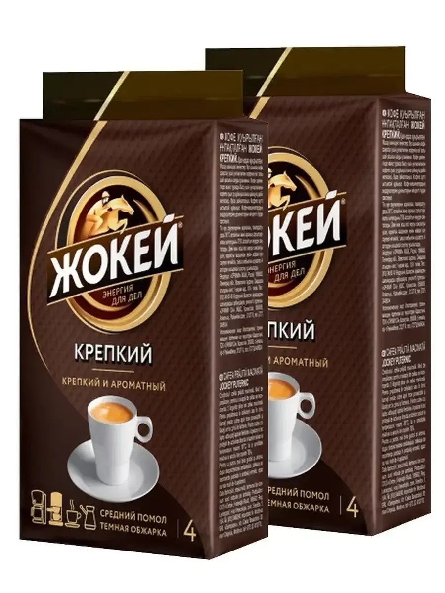 Жокей, Кофе молотый Крепкий. В комплекте 2 упаковки. Общий вес комплекта 450 г.Сложный бленд лучших сортов арабики из Бразилии и Вьетнама. Кофе Жокей Крепкий обладает идеально сбалансированным вкусом, ярким и насыщенным ароматом. Точная кофейная композиция, темная обжарка и особый помол делают этот сорт идеальным для любого способа приготовления.