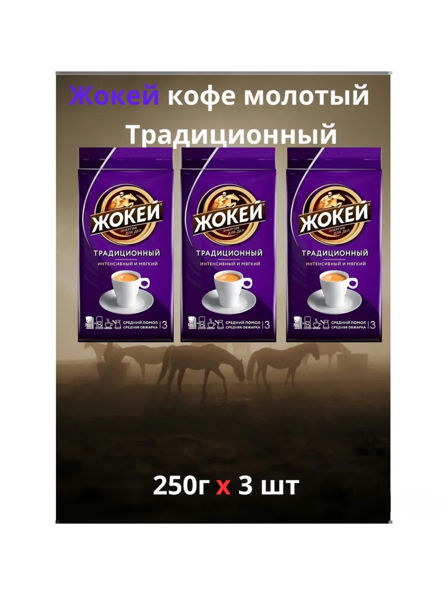 ЖОКЕЙ Кофе МОЛОТЫЙ, Традиционный. 250 гр. х 3 шт