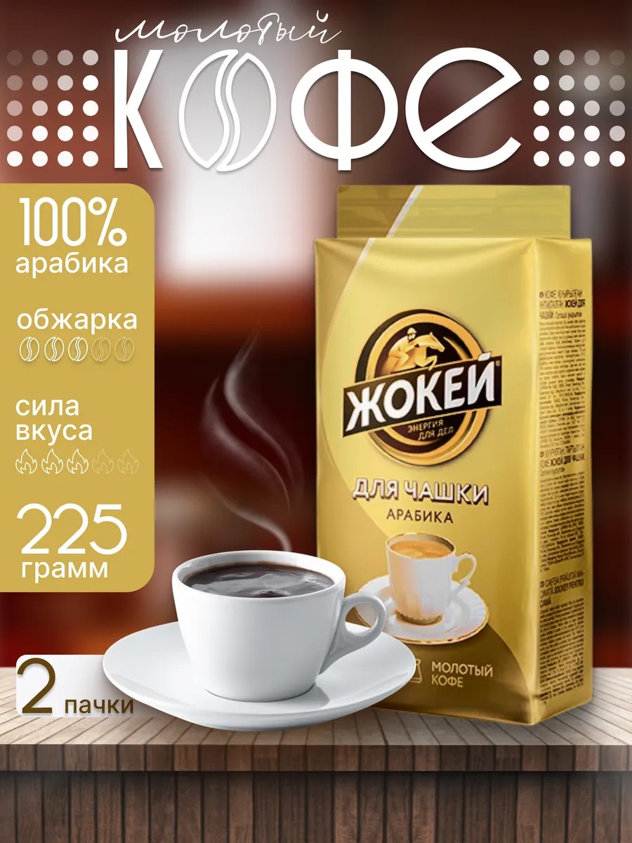 Мягкий, утонченный, ароматный, с легкими приятными нотками, Жокей Для чашки создан искусным сочетанием лучших сортов кофе. Супертонкий помол идеален для приготовления в чашке. Смесь арабики из Бразилии, Индии, Мексики и Эфиопии. Степень обжарки – тёмная, помол – тонкий. Приготовление – в чашке, турке или любой кофеварке