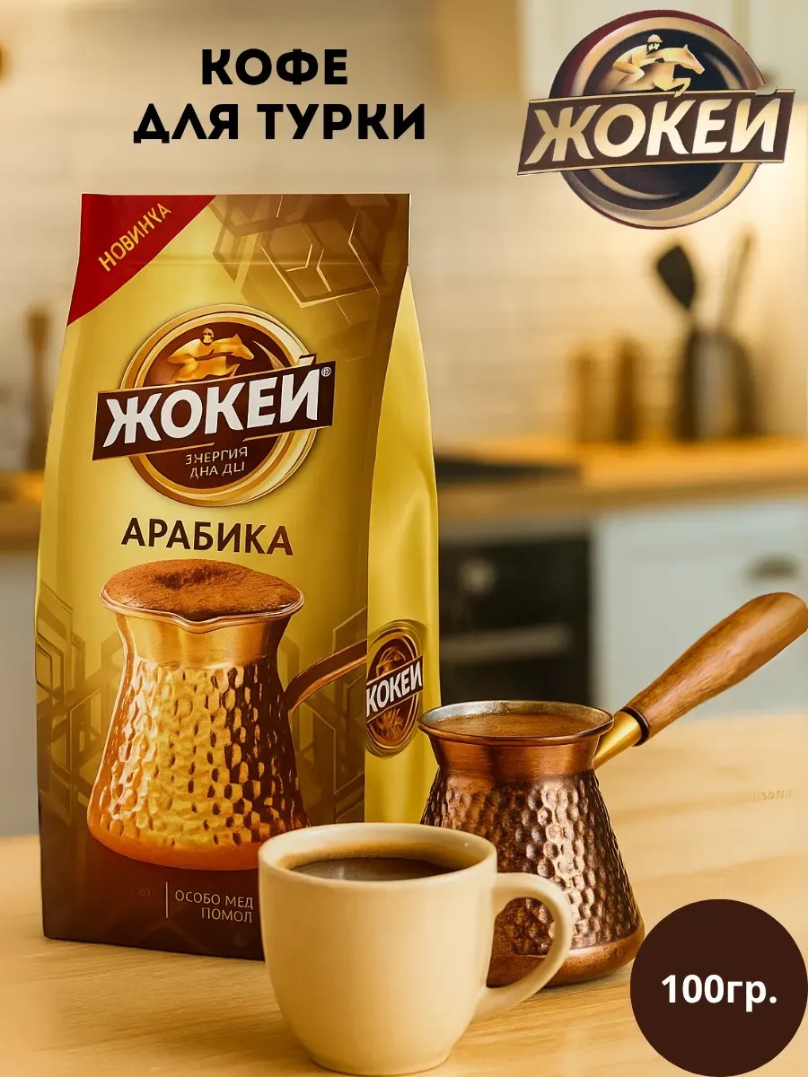 Молотый кофе Жокей «Для Турки Арабика», 100 г — настоящий восточный ритуал в вашей чашке