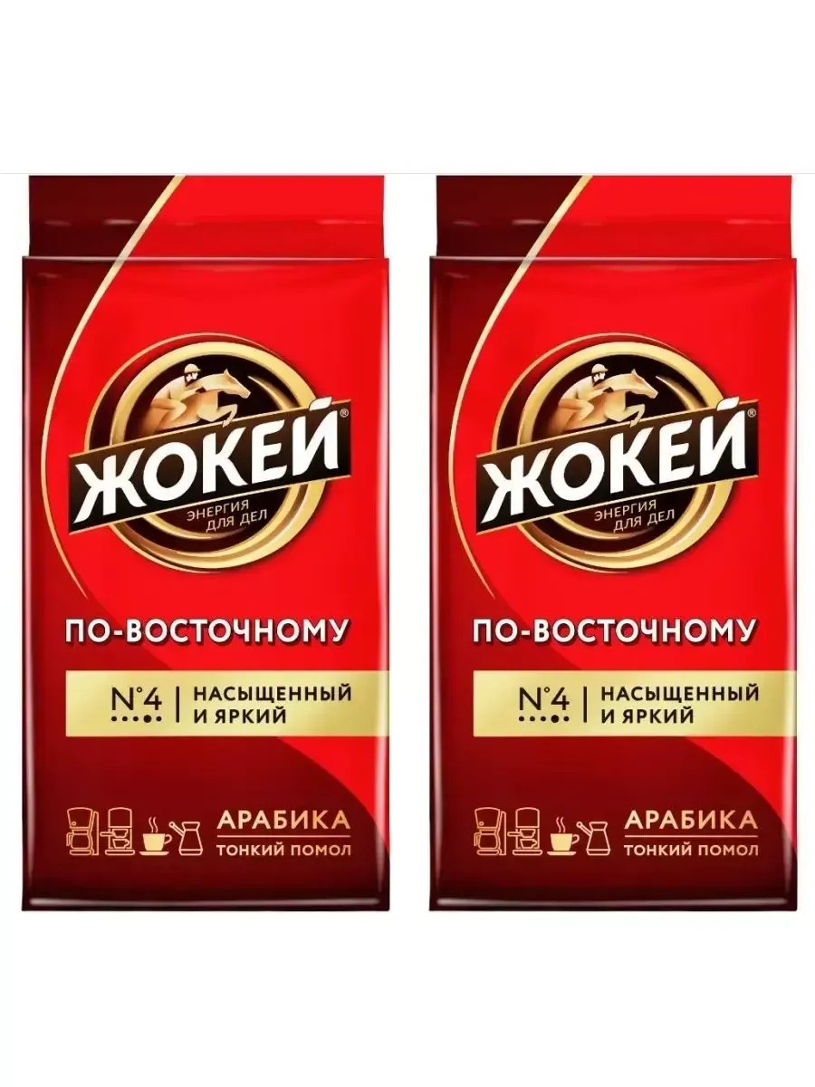 Жокей, Кофе молотый По-восточному. В комплекте 2 упаковки. Общий вес комплекта 200 г. Кофе молотый Жокей По-восточному создан из отменной арабики, собранной с плантаций Центральной и Южной Америки, Африки и Индии. Для наиболее полного раскрытия вкуса используется интенсивная обжарка кофейных зерен, которые впоследствии тонко перемалываются. Чашка свежеприготовленного напитка подарит вам неповторимый вкус и удивительный аромат. Крепкий, но в то же время мягкий, густой и насыщенный кофе подарит вам лучшие моменты, наполненные яркостью, бодростью и теплом. Жокей По-восточному станет оптимальным вариантом для использования в офисе, помогая поддерживать тонус, энергию и хорошее расположение духа. Это отличное угощение для гостей и клиентов, партнеров и товарищей.
