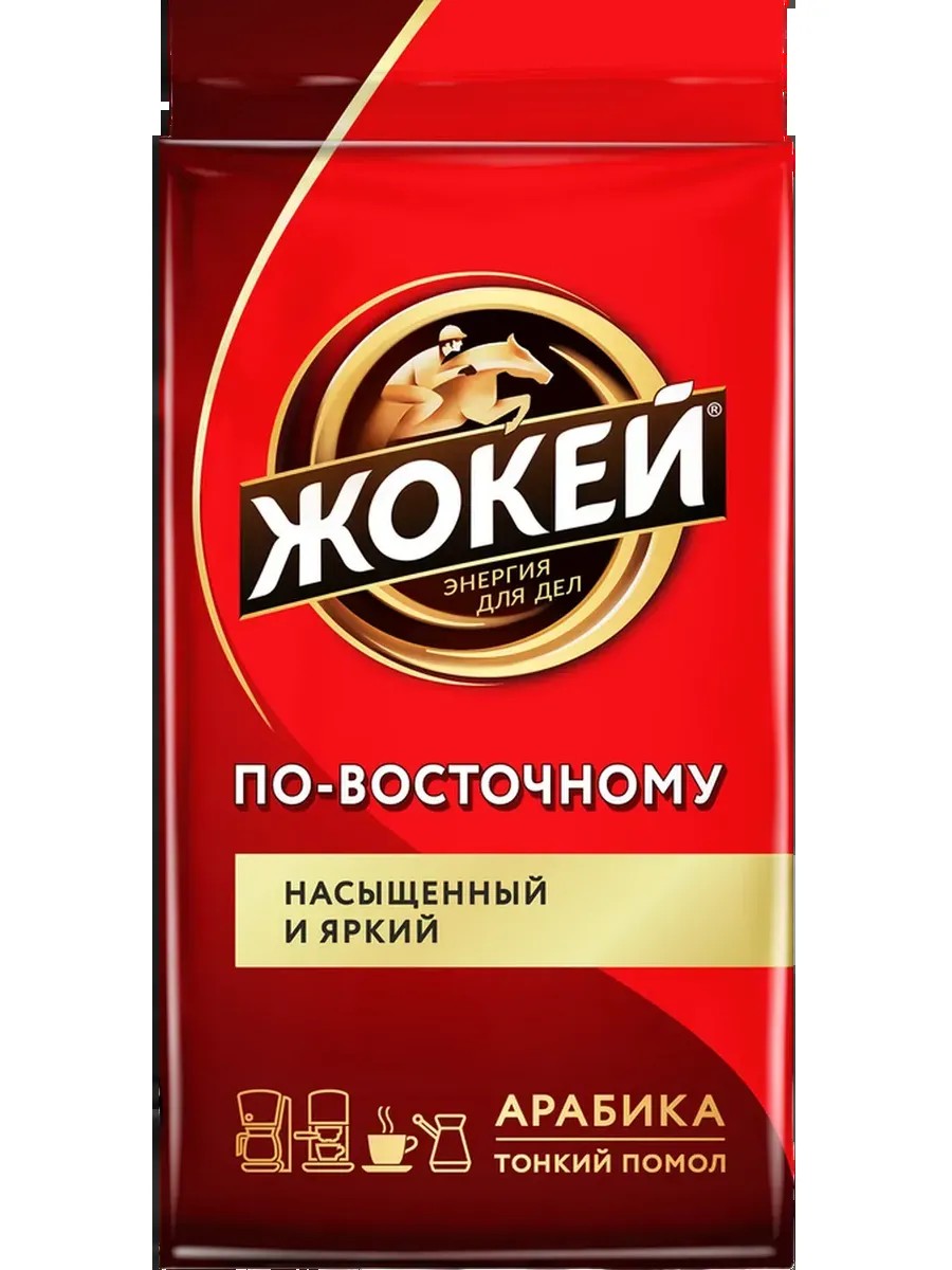 Кофе молотый ЖОКЕЙ По-Восточному ‒ уникальный бленд сортов Арабики из Бразилии, Эфиопии и Индии. Обладает насыщенным выраженным вкусом с пикантными пряными оттенками, приятным послевкусием и хорошо выраженным ароматом с нотой горького шоколада. Тонкий помол позволяет заваривать кофе прямо в чашке, залив его горячей водой.