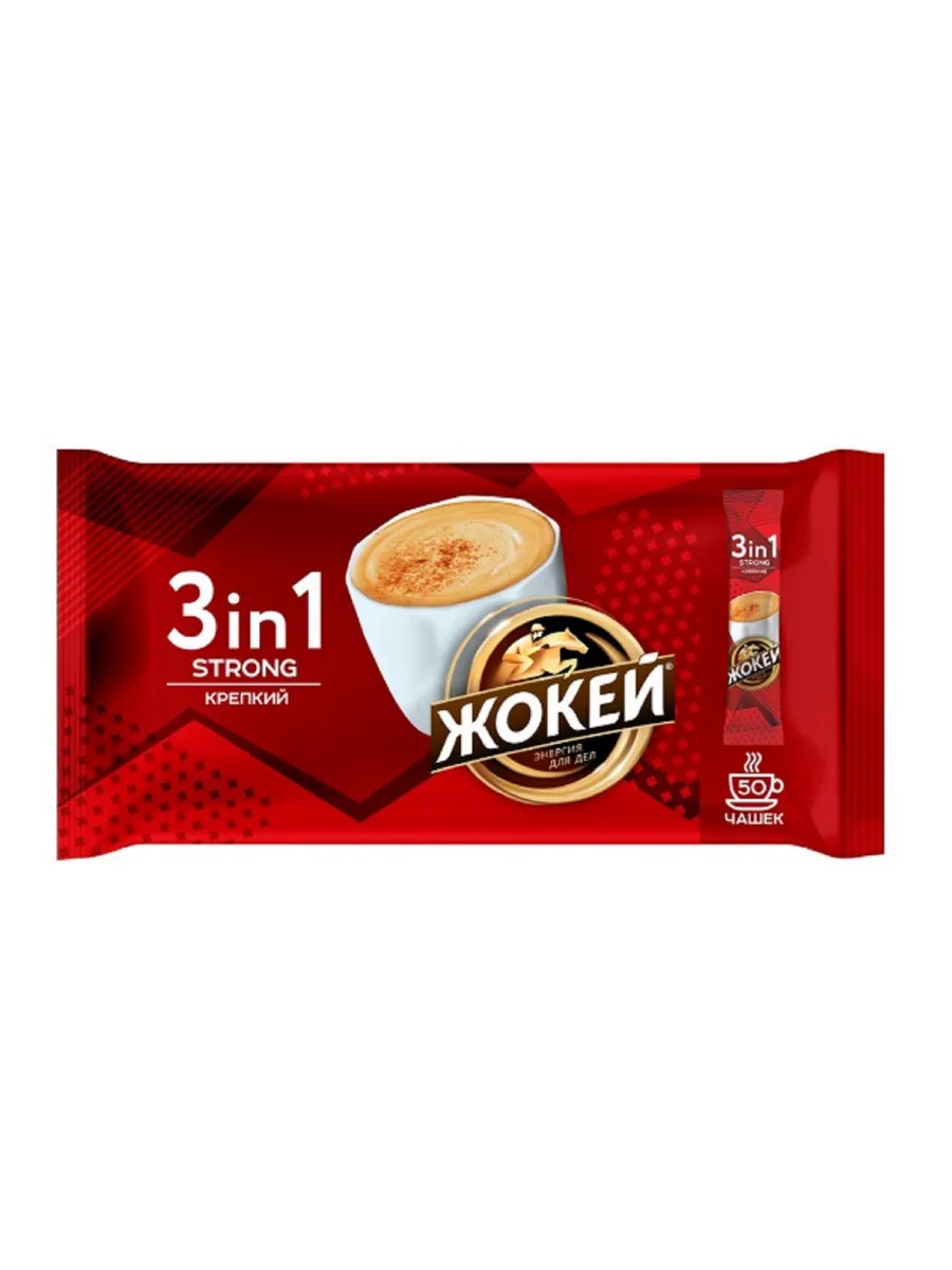 Jockey Strong Instant Coffee 3-in-1, 50 12g bags. Delicate 3-in-1 instant coffee, Jockey Strong, is now available in convenient packaging. The product comes in 50 single-serving bags, each containing single-serving sticks of milky coffee.