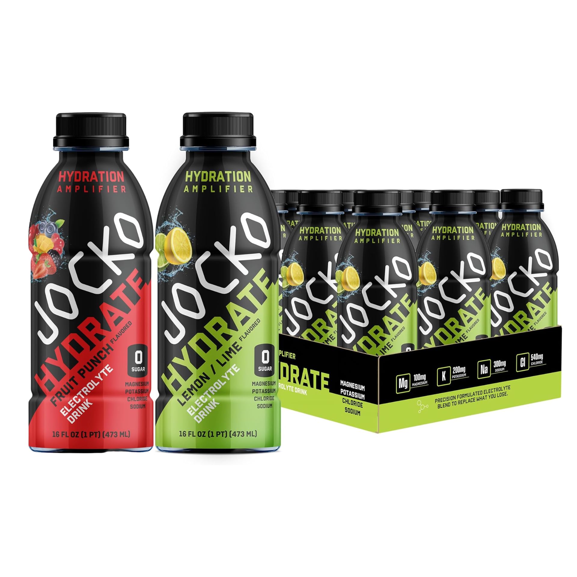 Jocko Fuel Hydrate Electrolyte Drinks - Sports Hydration Amplifier - Scientifically Formulated Electrolyte Blend Fruit Punch + Lemon-Lime 16 Oz (24 Pack)