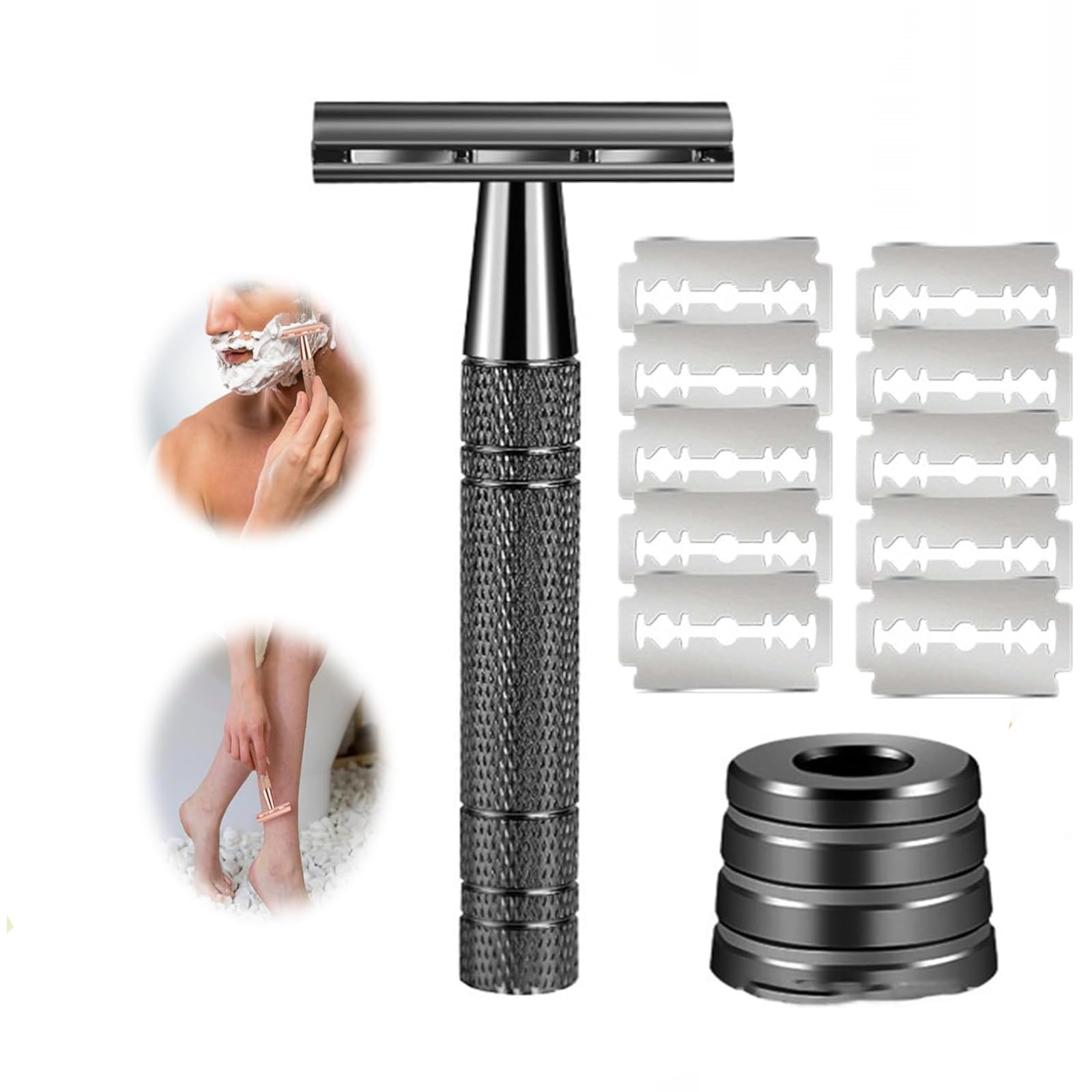Jodial Razor Jodial Safety Edge Razor Women&Men Rose Gold Double Edge Safety Razor With 10 Platinum Coated Double Edge Safety Razor Blades (Black +Base)