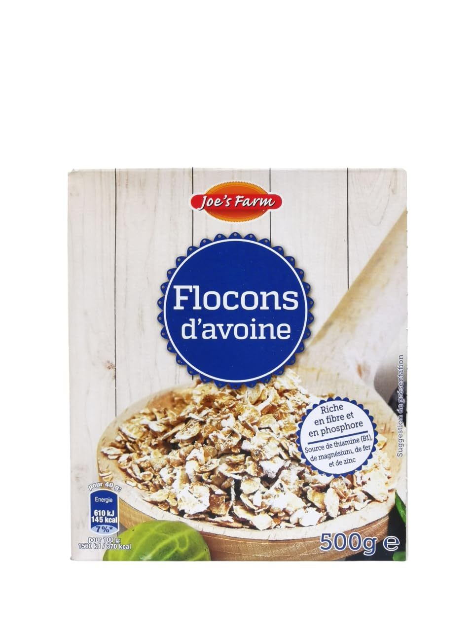 Joe's Farm Oatmeal cereals are a natural product of carefully selected whole grain oats. They are high in fiber, low in fat and with no added sugar, making them a healthy choice for breakfast or recipe ingredients. The crispy texture and neutral taste make them ideal to combine with fruit, milk or yoghurt. Perfect for those looking for a balanced and nutritious diet. They are distinguished by a versatile and highly nutritious food. It guarantees a high concentration of essential nutrients such as fiber, vegetable proteins, B vitamins and minerals such as iron, magnesium and zinc. They are an excellent sustainable energy source that is ideal for the start of the day or as a basis for healthy meals. The preparation is quick and easy: can be used to make porridge, homemade muesli, smoothies or even recipes such as cookies, bread or energy bars. An ideal choice for vegans, vegetarians and anyone who wants to integrate international, natural foods into their daily diet. INGREDIENTS whole grain oatsJoe's Farm Havervlokken, verpakking van 6 stuks (6 x 500 g) Joe's Farm Havermout granen zijn een natuurproduct van zorgvuldig geselecteerde volkoren haver. Ze zijn rijk aan vezels, vetarm en zonder toegevoegde suiker, waardoor ze een gezonde keuze zijn voor het ontbijt of voor recepteningrediënten. De knapperige textuur en de neutrale smaak maken ze ideaal om te combineren met fruit, melk of yoghurt. Perfect voor degenen die op zoek zijn naar een evenwichtige en voedzame voeding. Ze onderscheiden zich door een veelzijdig en zeer voedzaam voedsel. Het garandeert een hoge concentratie aan essentiële voedingsstoffen zoals vezels, plantaardige eiwitten, B-vitaminen en mineralen zoals ijzer, magnesium en zink. Ze zijn een uitstekende duurzame energiebron die ideaal is voor het begin van de dag of als basis voor gezonde maaltijden. De bereiding is snel en eenvoudig: kan worden gebruikt om pap, zelfgemaakte muesli, smoothies of zelfs recepten zoals koekjes, brood of energierepen te maken. Een ideale keuze voor veganisten, vegetariërs en iedereen die interale, natuurlijke levensmiddelen in hun dagelijkse voeding wil integreren. INGREDIËNTEN volkorenhaver