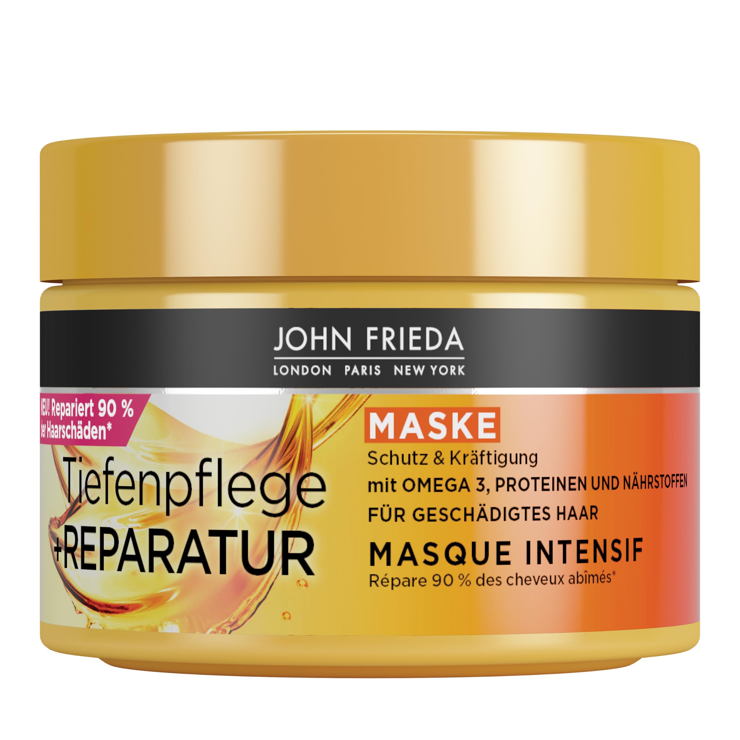 John Frieda Deep Conditioning and Repair Range: John Frieda's range for damaged to very damaged hair – Contains omega-3 fatty acids, proteins, and nutrients – For stronger, healthier hair – Helps repair damaged hair by deeply nourishing without weighing it down – Made in Germany INGREDIENTS Aqua, Cetearyl Alcohol, Dimethicone, Behentrimonium Chloride, Cetyl Esters, Dipropylene Glycol, Parfum, Quaternium-91, Disodium EDTA, Cetrimonium Methosulfate, Sodium Hydroxide, Stearoxypropyl Dimethylamine, C14-28 Isoalkyl Acid, Glycine, Malic Acid. d, Plukenetia Volubilis Seed Oil, C14-28 Alkyl Acid, Propylene Glycol, Stearyl Alcohol, Honey Extract, Tocopherol, Benzoic Acid, Phenoxyethanol, Potassium Benzoate, Potassium Sorbate, Amyl Cinnamal, Coumarin, Hexyl Cinnamal DIRECTIONS Apply generously to wet hair after shampooing, leave on for 2 to 3 minutes - Visibly repairs the hair surface SAFETY WARNING Not suitable for children under 3 years. See more[How to Use]: Apply generously to wet hair after shampooing, leave on for 2 to 3 minutes – visibly repairs the hair's surface. OMEGA 3 proteins nutrients: helps repair damaged hair without weighing it down. Protection and strengthening: for added suppleness and shine. Repairs hair damage: repairs 90 of hair damage – when used with the Deep Conditioning Repair series as directed. [Contents]: John Frieda Deep Conditioning Repair Mask – 250 ml – Hair type: damaged, severely damaged.John Frieda Soin en profondeur Réparation - Cure capillaire masque - Volume : 250 ml - Pour cheveux abîmés et extrêmement abîmésDESCRIPTION DU PRODUIT DESCRIPTION DU PRODUIT John Frieda Gamme de soins en profondeur et de réparation : la gamme de John Frieda pour cheveux abîmés à très abîmés – Contient des oméga 3, des protéines et des nutriments – Pour des cheveux plus forts et plus sains – Aide à réparer les cheveux abîmés en nourrissant en profondeur sans les alourdir – Fabriqué en Allemagne INGRÉDIENTS Aqua, Cetearyl Alcohol, Dimethicone, Behentrimonium Chloride, Cetyl Esters, Dipropylene Glycol, Parfum, Quaternium-91, Disodium EDTA, Cetrimonium Methosulfate, Sodium Hydroxide, Stearoxypropyl Dimethylamine, C14-28 Isoalkyl Acid, Glycine, Malic Acid. d, Plukenetia Huile de graines Volubilis, acide alkyl C14-28, propylène glycol, alcool stéarylique, extrait de melel, tocophérol, acide benzoïque, phénoxyéthanol, potassium benzoate, sorbate de potassium, amyl cinnamal, coumarine, hexyl cinnamal MODE D'EMPLOI Répartissez généreusement sur les cheveux mouillés après le shampooing, laissez agir 2 à 3 minutes - Répare visiblement à la surface des cheveux AVERTISSEMENT DE SÉCURITÉ Ne convient pas aux enfants de moins de 3 ans. Voir plus[ Utilisation ] : répartir généreusement sur les cheveux mouillés après le shampooing, laisser agir 2 à 3 minutes - Répare visiblement à la surface des cheveux. OMEGA 3 protéines nutriments : aide à réparer les cheveux abîmés sans les alourdir. Protection et renforcement : pour plus de souplesse et de brillance. Répare les dommages capillaires : répare 90 des dommages capillaires – lors de l'utilisation de la série de soins en profondeur réparation avec la quantité et la fréquence indiquées. [ Contenu de la livraison] : soin en profondeur John Frieda masque réparateur - Contenu 250 ml - Type de cheveux : abîmés, fortement endommagés.