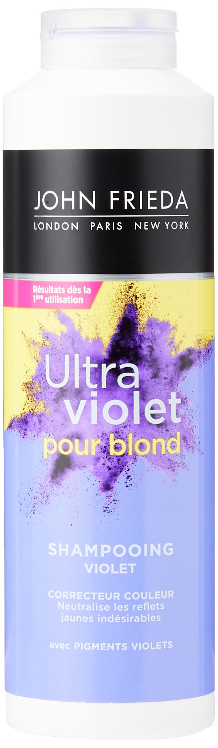 Say goodbye to yellow tones, for a pure and radiant blonde. Our Violet Shampoo gradually neutralizes unwanted yellow tones to reveal a luminous blonde. INGREDIENTS "The ingredient list may be subject to updates we advise you to refer to the packaging. Aqua, Sodium Laureth Sulfate, Sodium Lauryl Sulfate, Glycol Distearate, Cetyl Alcohol, Betaine, Cocamide MEA, Parfum, Lactic Acid, Malic Acid, Sodium Chloride, Cocamidopropyl Betaine, Benzyl Alcohol, Sodium Hydroxide, Guar Hydroxypropyltrimonium Chloride, Disodium EDTA, Acid Violet 43, Glycine, Benzophenone-4, Ethylhexyl Methoxycinnamate, PEG-40 Hydrogenated Castor Oil, Trideceth-9, Sodium Xylenesulfonate, Lavandula Angustifolia Flower Leaf Stem Extract, Pentylene Glycol, Bisabolol, Propylene Glycol, BHT, Sodium Benzoate, Methylchloroisothiazolinone, Methylisothiazolinone, Limonene" DIRECTIONS FOR USE Apply the shampoo to wet hair, massage, and rinse thoroughly. SAFETY WARNING Gently apply to wet hair, lather, and leave on for 1 minute. Rinse thoroughly and then follow with the Purple Detangling Conditioner. See moreSuitable for colored, lightened, highlighted, and balayage blonde hair. Can be used preventively or to correct unwanted yellow tones. Contains violet pigments that neutralize yellow tones. For a cooler, brighter blonde. Prevents and corrects unwanted yellow tones in blonde hair.JOHN FRIEDA Ultra Violet pour Blond Shampooing Violet 500 mlDESCRIPTION DU PRODUIT DESCRIPTION DU PRODUIT Fini les reflets jaunes, pour un blond pur et éclatant. Notre Shampooing Violet neutralise progressivement les reflets jaunes indésirables pour retrouver un blond lumineux. INGRÉDIENTS "La liste des ingrédients peut être soumise à des mises à jour, nous vous conseillons de vous référer à l'emballage. Aqua, Sodium Laureth Sulfate, Sodium Lauryl Sulfate, Glycol Distearate, Cetyl Alcohol, Betaine, Cocamide MEA, Parfum, Lactic Acid, Malic Acid, Sodium Chloride, Cocamidopropyl Betaine, Benzyl Alcohol, Sodium Hydroxide, Guar Hydroxypropyltrimonium Chloride, Disodium EDTA, Acid Violet 43, Glycine, Benzophenone-4, Ethylhexyl Methoxycinnamate, PEG-40 Hydrogenated Castor Oil, Trideceth-9, Sodium Xylenesulfonate, Lavandula Angustifolia Flower Leaf Stem Extract, Pentylene Glycol, Bisabolol, Propylene Glycol, BHT, Sodium Benzoate, Methylchloroisothiazolinone, Methylisothiazolinone, Limonene" MODE D'EMPLOI Appliquer le shampooing sur cheveux mouillés, masser et rincer abondamment. AVERTISSEMENT DE SÉCURITÉ Appliquez délicatement sur cheveux mouillés, faire mousser et laissez poser 1 minute. Rincez bien et poursuivez ensuite avec le Soin Démêlant Violet. Voir plusConvient aux cheveux blonds colorés, éclaircis, méchés,balayés. Peut s'utiliser en prévention ou en correction. Aux pigments violets qui neutralisent les reflets jaunes. Pour un blond plus froid et lumineux. Prévient et corrige les reflets jaunes indésirables des cheveux blonds.