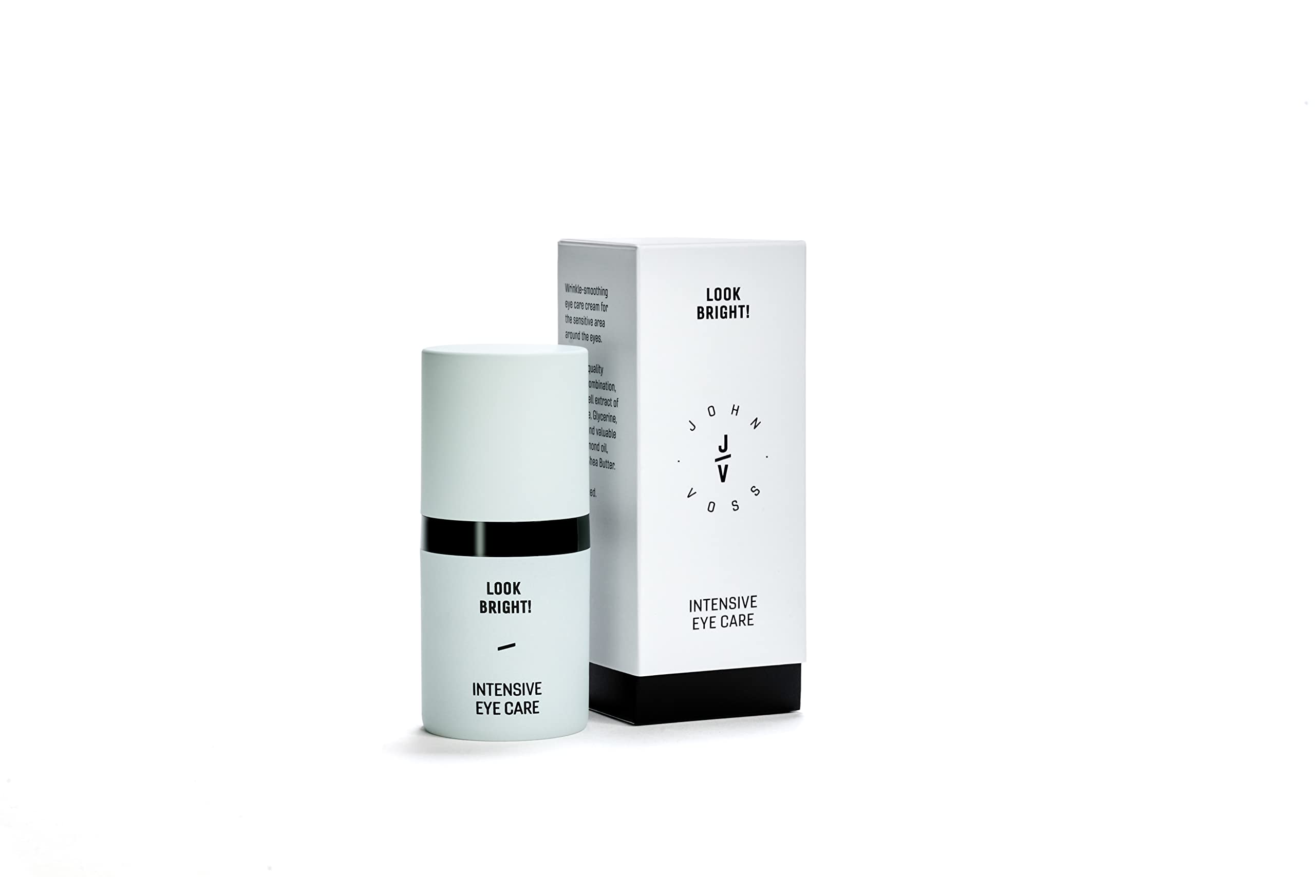 Cream without perfume and additives: without silicone and parabens, without mineral oils and sulfates, without aluminum salts, without parafine and formaldehyde, without perfume, gluten -free, lactose -free, vegan.Made in Germany: Developed and manufactured in Germany- of course without animal experiments.- Dermatologically tested for the sensitive eye area.Hygienic and productive use by finely dosed cream in the high -quality pump dispenser.Maintains and feeds the sensitive eye area with high -quality oils: argan oil, almond oil and shea butter protect against loss of moisture and strengthen skin elasticity.Vitamin E increases the skin's moisture capacity and protects the skin as an antioxidant and radical catcher.The special formula of eye care with the stem cell extract of alpine rose: strengthens the skin barrier and significantly reduces the loss of moisture and the drying of the skin due to climatic stress.Anti-fold cream with hyaluron: A combination of different hyaluronic acids reduces wrinkles by intensive care for the skin with moisture.The eye cream against wrinkles and dark circles.Creme ohne Parfum und Zusatzstoffe: Ohne Silikon und Parabene, ohne Mineralöle und Sulfate, ohne Aluminiumsalze, ohne Parafine und Formaldehyd, ohne Parfum, glutenfrei, lactosefrei, vegan. Made in Germany: Entwickelt und hergestellt in Deutschland- Natürlich OHNE TIERVERSUCHE.- für die sensible Augenpartie DERMATOLOGISCH GETESTET. Hygienische und ergiebige Anwendung durch fein dosierbare Creme im hochwertigen Pumpspender. Pflegt und nährt die sensible Augenpartie mit hochwertigen Ölen: Arganöl, Mandelöl und Sheabutter schützen vor Feuchtigkeitsverlust und stärken die Hautelastizität. Vitamin E steigert das Feuchtigkeitsbindevermögen der Haut und schützt die Haut als Antioxidans und Radikalfänger. Die besondere Formel der Augenpflege mit dem Stammzellenextrakt der Alpenrose: stärkt die Hautbarriere und mindert deutlich den Feuchtigkeitsverlust und die Austrocknung der Haut durch klimatischen Stress. Anti-Falten Creme mit Hyaluron: eine Kombination verschiedener Hyaluronsäuren reduziert Fältchen durch intensive Versorgung der Haut mit Feuchtigkeit. Die Augencreme gegen Falten und Augenringe.JOHN VOSS, LOOK BRIGHT! Intensive Eye Care, Augencreme für sie und ihn, Hyaluron, Vitamin E, Mandelöl, Arganöl, Sheabutter, Stammzellenextrakt der Alpenrose, vegan, parfumfrei, 15ml, Made in Germany
