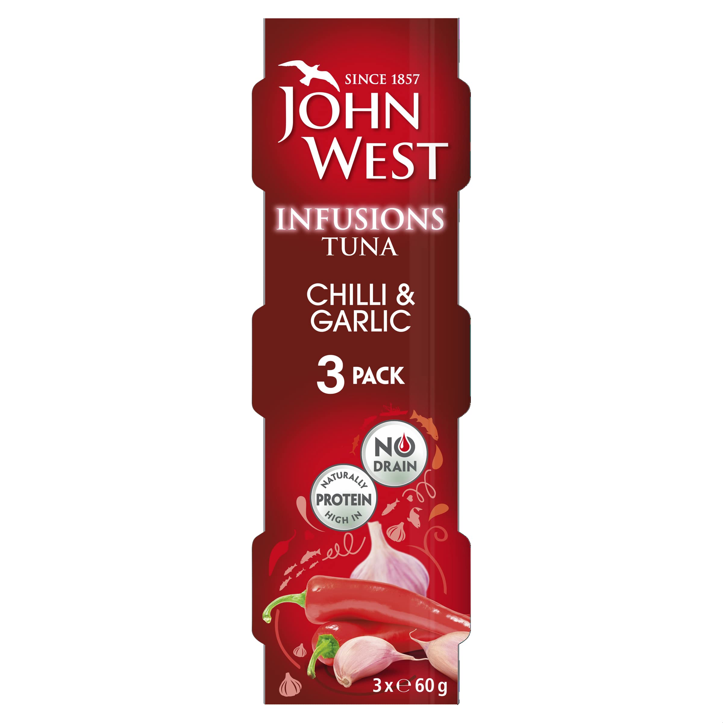 JOHN WEST FOODS LTD John West Infusions Tuna Chili & Garlic 3 x 60g Single serve multipack natural protein