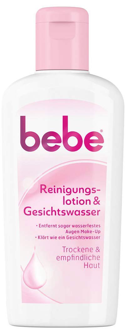 bebe Cleansing lotion facial water Dry and sensitive skin The bebe cleansing lotion facial water Dry and sensitive skin is a practical combination of care products: simply apply, massage and rinse. The skin is intensively cleansed and cared for at the same time. The mild and light cleansing lotion thoroughly and gently removes make-up - even waterproof eye make-up. The product has been specially developed for sensitive and dry skin and is therefore particularly well tolerated and moisturizing. Ingredients: [PR-017718]: Aqua, Paraffinum Liquidum, Glycerin, Sorbitol, Panthenol, Allantoin, Caprylyl Glycol, PEG-40 Hydrogenated Castor Oil, Glyceryl Stearate, PEG-100 Stearate, Carbomer, p-anisic acid, Sodium Hydroxide, Sodium Citrate, Citric Acid. cid, chlorophenes. esin, perfume. Bebe: The skin care brand from Germany for young skin bebe is the skin care expert for young skin. For more than 50 years, bebe has been developing body care that focuses primarily on the needs of young skin. The brand was able to further develop its concept, which was originally aimed at babies and toddlers, as an insider tip for girls and young women. The gentle formulas from bebe stand for uncomplicated care and natural beauty. Completely according to the motto: Bye-bye beauty stress, hello enchanting!1 x 200 ml bebe cleansing lotion facial water Dry and sensitive skin. Use: Apply to face, neck and décolleté with a cotton pad and rinse with clean water. When applied to the skin, the lotion turns into a liquid facial water, which intensively cleanses and purifies the skin - for fresh and healthy-looking skin. This mild cleansing lotion can thoroughly remove waterproof make-up without leaving traces. The bebe cleansing lotion facial water for dry and sensitive skin provides gentle care for sensitive and dry skin - for particularly easy cleaning and care.Bebe Reinigingslotion gezichtswater - zachte gelaatsreiniging voor gevoelige en droge huid - 1 x 200 ml bebe Reinigingslotion gezichtswater Droge en gevoelige huid De bebe reinigingslotion gezichtswater Droge en gevoelige huid is een praktische combinatie van verzorgingsproducten: eenvoudig aanbrengen, inmasseren en afspoelen. De huid wordt intensief gereinigd en tegelijkertijd verzorgd. De milde en lichte reinigingslotion verwijdert grondig en zacht make-up - zelfs waterdichte oogmake-up. Het product is speciaal ontwikkeld voor de gevoelige en droge huid en is daardoor bijzonder goed verdragen en hydraterend. Ingrediënten: [PR-017718]: Aqua, Paraffinum Liquidum, Glycerine, Sorbitol, Panthenol, Allantoïne, Caprylyl Glycol, PEG-40 gehydrogeneerde castorolie, glycerylstearaat, PEG-100 stearaat, carbomeer, p-anisic zuur, natriumhydroxide, natriumcitraat, citrisch zuur. cid, chloorfenen. esin, parfum. Bebe: Het huidverzorgingsmerk uit Duitsland voor jonge huid bebe is de huidverzorgingsexpert voor jonge huid. Al meer dan 50 jaar ontwikkelt bebe lichaamsverzorging, die zich vooral bezighoudt met de behoeften van jonge huid. Het merk kon zich met zijn concept, dat oorspronkelijk op baby's en peuters was gericht, zich als geheime tip voor meisjes en jonge vrouwen verder ontwikkelen. De zachte formules van bebe staan voor ongecompliceerde verzorging en natuurlijke schoonheid. Geheel volgens het motto: Bye-bye beautystress, hallo betoverend!1 x 200 ml bebe reinigingslotion gezichtswater Droge en gevoelige huid. Gebruik: Verdeel met een wattenschijfje over gezicht, hals en decolleté en spoel af met schoon water. Bij het aanbrengen op de huid verandert de lotion in een vloeibaar gezichtswater, dat de huid intensief reinigt en zuivert – voor een frisse en gezond uitziende huid. Met deze milde reinigingslotion kan waterdichte make-up grondig worden verwijderd zonder sporen achter te laten. De bebe reinigingslotion gezichtswater voor droge en gevoelige huid biedt zachte verzorging voor de gevoelige en droge huid - voor een bijzonder eenvoudige reiniging en verzorging.