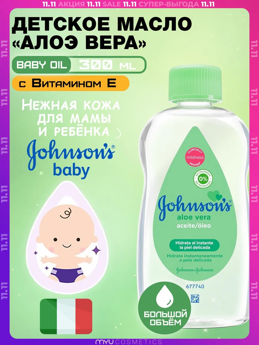 Массажное масло для тела Джонсон с бэби с алоэ разработано специально для кожи малышей и идеально подойдет для массажа. Является прекрасным увлажняющим средством, способствует поддержанию водно-липидного баланса кожи. Уникальная формула увлажняющего масла Джонсонс беби, обогащенная натуральными маслами и витаминами, помогает бережно увлажнять и питать кожу, предотвращая ее сухость и шелушение. При нанесении на кожу масло, обогащенное алоэ вера, удерживает до 10 раз больше влаги, чем обычное молочко на сухой коже, и дарит ощущение мягкости и гладкости.
