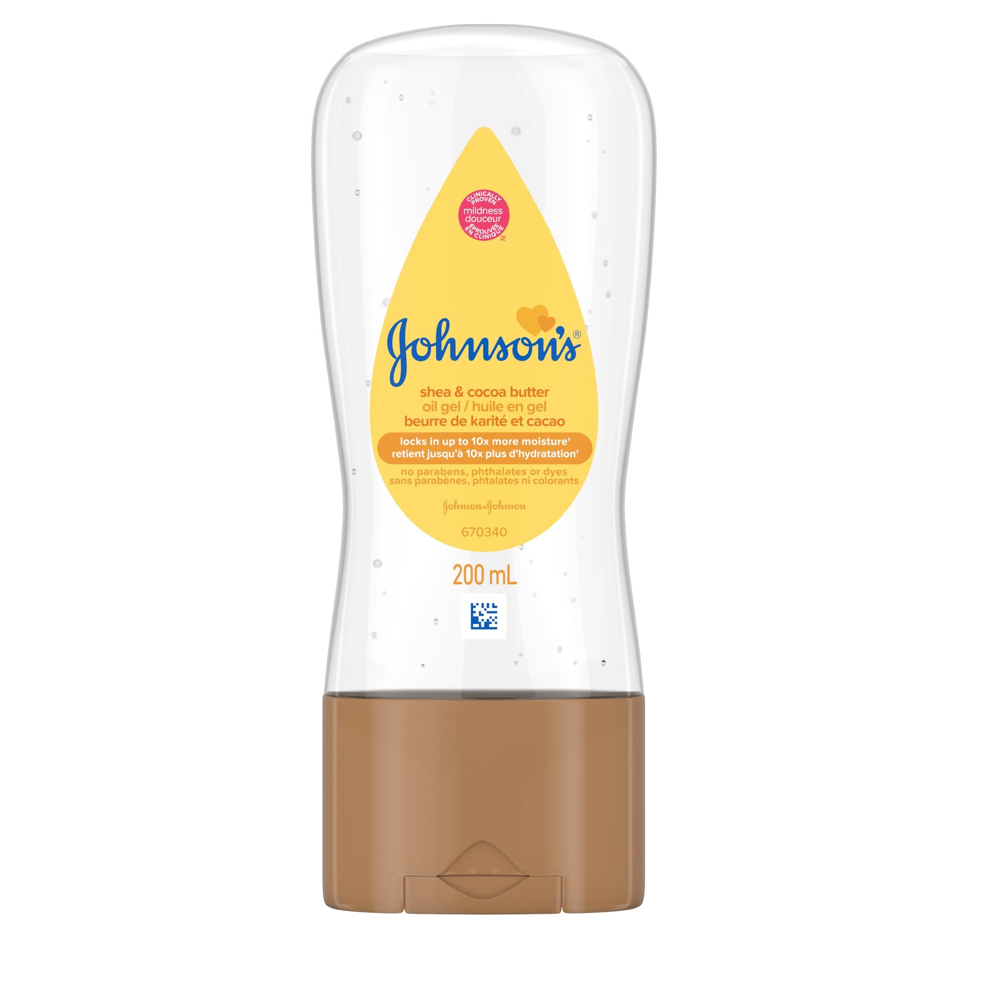 Enriched with shea and cocoa butter, Johnson's Baby Oil Gel with Shea and Cocoa Butter helps moisturize baby's skin. Formulated for babies and great for relieving your dry, rough patches, this baby oil gel is a clinically proven mild and gentle formula for your baby's skin. Made with mineral oil, this gel locks in up to 10 times more moisture on wet skin than an ordinary lotion can on dry skin. With nourishing shea and cocoa butters, it helps leave skin glowing and feeling baby-soft. With a dermatologist tested and hypoallergenic formula, this lightly scented baby oil gel is easy to spread, but isn't runny, so it's ideal for baby massage. This mineral oil gel is also ideal for soothing dry skin on toddlers, kids and adults.