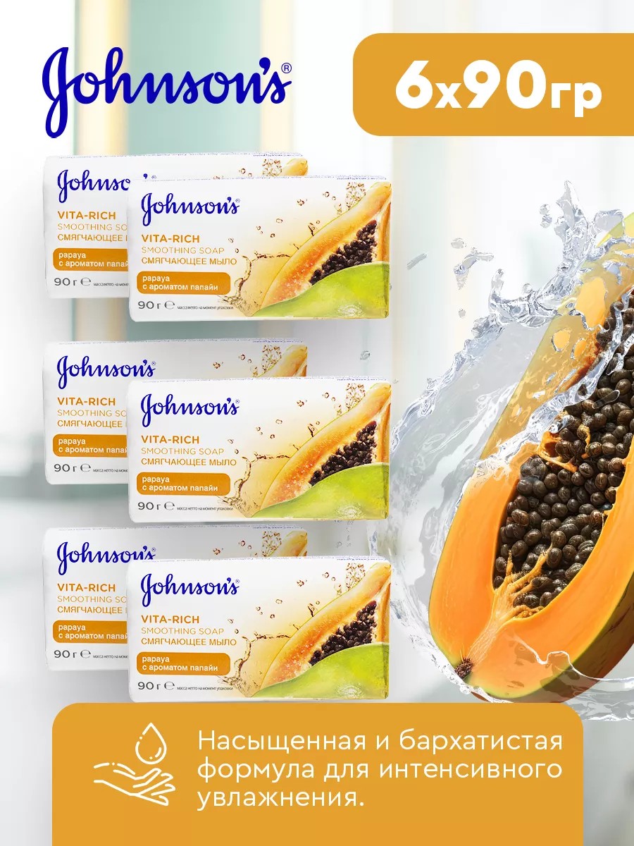 Johnson's Vita-Rich Toilet Soap with Papaya Extract. This restorative bar soap contains papaya extract and protective oil, which actively cleanses, softens, and restores the skin of your hands and body, leaving it looking healthy and feeling fresh. The papaya extract in this bar soap is a natural source of fruit acids and vitamins, which help cleanse and moisturize the skin, leaving it softer and smoother. This bar soap effectively cleanses the skin, removing impurities and makeup residue, while also restoring its natural balance and leaving it velvety to the touch. This cosmetic soap leaves a subtle, pleasant scent on the body. To use, simply lather your skin and then rinse thoroughly with water. Johnson's Vita Rich Soap, in a set of 6, allows for economical use at an attractive price.