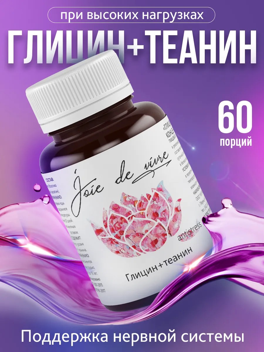The dietary supplement Glycine and Theanine is a natural, effective remedy for the brain, memory, and nervous system. It is used as a stress reliever and sleep aid. This dietary supplement contains the amino acids Glycine and L-theanine, which help improve mood, reduce psychoemotional tension and stress, increase mental performance, normalize sleep, and combat insomnia.