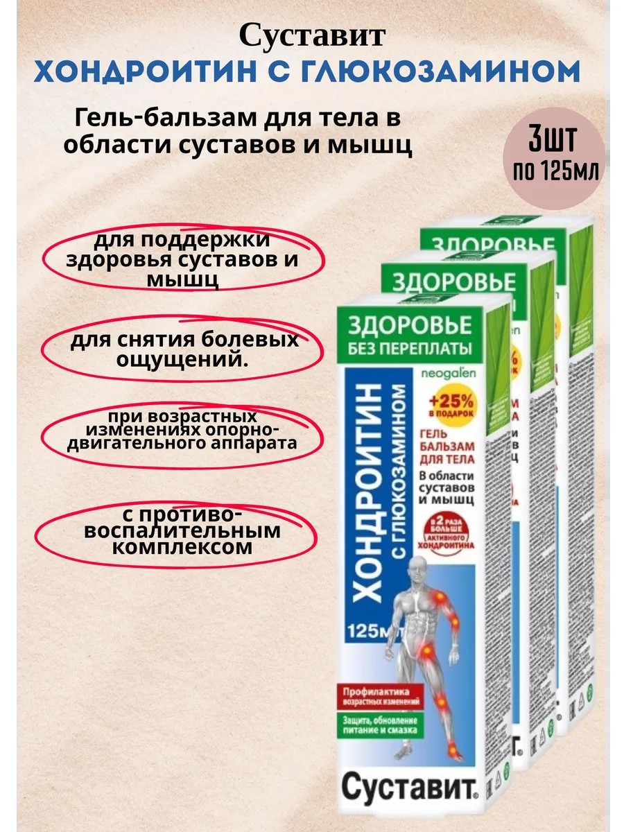Бальзам для тела хондроитин с глюкозамином 3шт по 125 мл