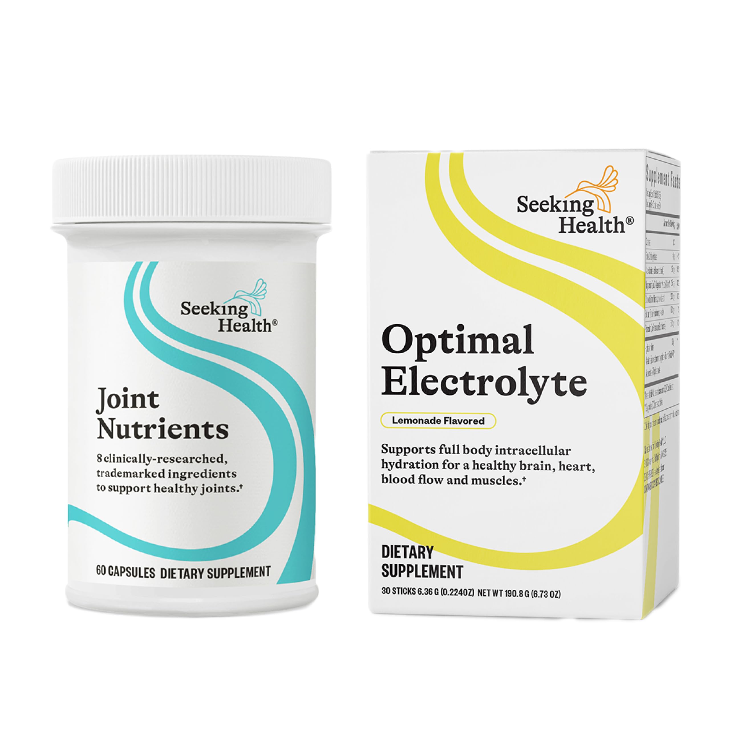 Joint Nutrients provides support for joint flexibility, comfort, and healthy blood flow with a synergistic blend of collagen, plant extracts, niacin, and boron, targeting joint, bone, and connective tissue health. Add Seeking Health Optimal Electrolyte Sticks for daily hydration, PEAK ATP, creatine, magnesium, sodium, and vitamin B3—delivering muscle recovery, energy, and clear focus in a plant-based, allergen-free formula for complete musculoskeletal well-being.Comprehensive formulation: Contains essential electrolytes, including niacin, magnesium, and creatine to support energy production, muscle repair, and cognition clarity. Also formulated with sodium potassium to support hydration. Hydration and energy: Optimal Electrolyte single-serving stick packs are strategically formulated to promote all-day hydration and energy. Key nutrients synergistically support healthy ATP (energy) production and electrolyte balance. Daily joint health support: Away from food by one hour, take 2 capsules in the morning or night alternatively, take 1 capsule in the morning upon waking and 1 capsule at night before bed use as directed by your healthcare professional. Comprehensive joint support supplement: Carefully sorted ingredients help to support healthy lipid levels and healthy blood flow, support a healthy immune response and healthy collagen levels in the joints with antioxidant-like properties, that support healthy levels of histamine and a healthy response, as well as joint comfort. Targeted support: Joint Nutrients by Seeking Health is carefully formulated with Collavant n2 collagen, Peptizyme SP EN, Mobilee, niacin, and more to support healthy joint movement, as well as provide nutrient building blocks to support joint structure.