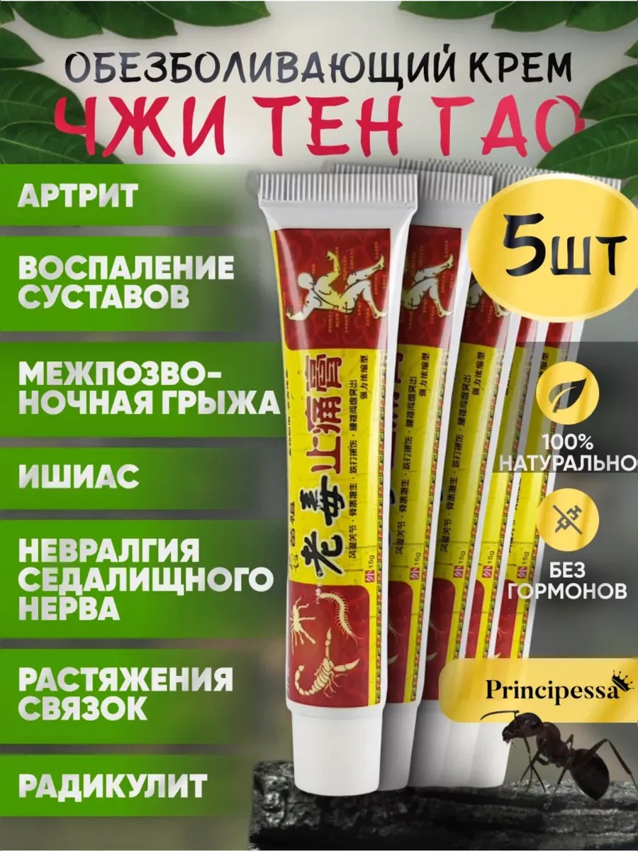 Китайская традиционная чудо мазь. Чжи Тен Гао. Крем можно использовать, как обезболивающее средство от любых болей, воспалений и даже радикулита. Эффективен при таких, как ревматоидный артрит и воспаление суставов. Различных травмах. Также справляется с мышечной болью после силовых тренировок, ревматизмом, невралгией седалищного нерва и другими воспалениями. Убирает повреждения от ударов и ушибов. Она включает в себя активные компоненты – падубовое масло, черный муравей, борнеол, хлоргексидин. Плотная текстура, хорошо впитывается и не оставляет следов на одежде.