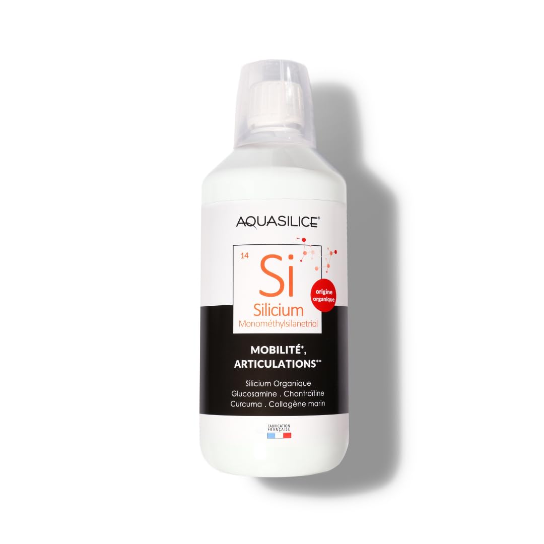 Collagen is a protein present in all body structures: skin, cartilage, tendons, ligaments, connective tissues. It represents 30 to 35 of the body's total proteins. MADE IN FRANCE: Our Organic Silicon is made in France and shipped from Ociitanie, by Laboratoire Abiocom, a family business founded more than 15 years ago. A guarantee of quality. COMPLETE FORMULA OF ORGANIC ORIGIN: Our oral solution contains a formula of organic and concentrated origin. It combines Monomethylsilanetriol, Marine Collagen, Glucosamine, Chondroitin, Turmeric, Ginger and Manganese for joint well-being. STRENGTHENS YOUR JOINTS BONES: Aquasilice Organic Silicon contributes to bone consolidation by promoting calcium fixation by bones. It also supports the strength and repair of cartilage, essential for joint mobility. THE POWER OF ORGANIC SILICON: Our Joint Organic Silicon offers the essential benefits of organic silicon for your body. It plays a crucial role in the formation of collagen, promoting the strength of bones, joints and skin. It helps maintain joint mobility and muscle comfort.Le collagène est une protéine présente dans toutes les structures du corps : peau, cartilages, tendons, ligaments, tissus conjonctifs. Il représente 30 à 35 des protéines totales de l'organisme. FABRIQUÉ EN FRANCE : Notre Silicium Organique est fabriqué en France et expédié depuis l'Ociitanie, par le Laboratoire Abiocom, une entreprise familiale fondée il y a plus de 15 ans. Une garantie de qualité. FORMULE COMPLÈTE A L'ORIGINE ORGANIQUE : Notre solution buvable contient une formule d'origine organique et concentrée. Elle associe du Monométhylsilanetriol, du Collagène Marin, de la Glucosamine, de la Chondroïtine, du Curcuma, du Gingembre et du Manganèse pour le bien-être articulaire. RENFORCE VOS ARTICULATIONS OS : Le Silicium Organique Aquasilice contribue à la consolidation osseuse en favorisant la fixation du calcium par les os. Il soutient également la solidité et la réparation des cartilages, essentiels pour la mobilité articulaire. LE POUVOIR DU SILICIUM ORGANIQUE : Notre Silicium Organique Articulaire offre les bienfaits essentiels du silicium organique pour votre organisme. Il joue un rôle crucial dans la formation du collagène, favorisant la solidité des os, des articulations et de la peau. Il aide à maintenir la mobilité articulaire et le confort musculaire.
