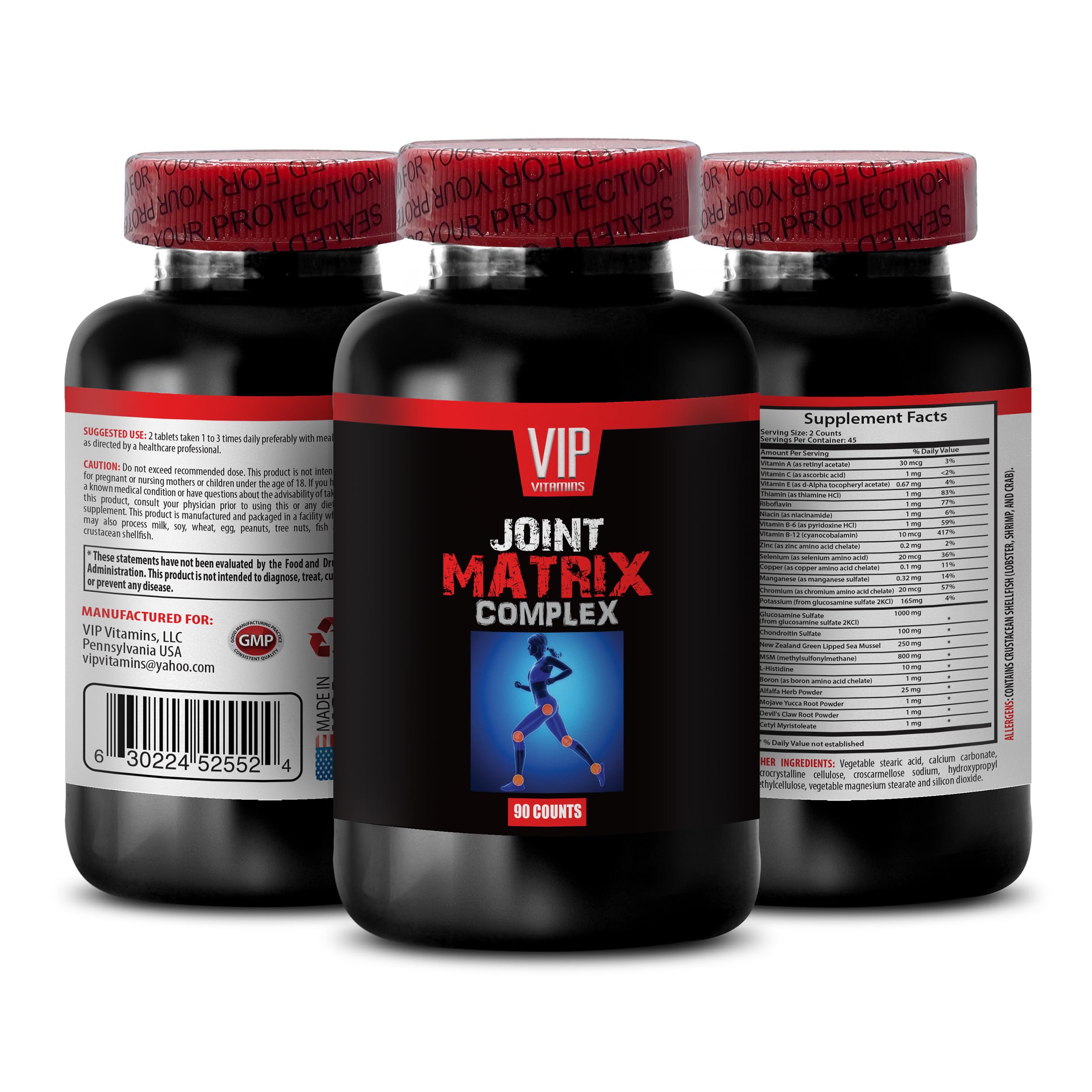 JOINT MATRIX COMPLEX: Our powerful complex contain natural blend that can help you support your joint and bones. It contains: Vitamins A, C, E, B-1, B-2, B-6, B-12, Zinc, Niacinamide, Selenium, Cooper, Manganese, Chromium, Glucosmine sulfate, Chondroitine Sulfate, MSM, Boron, Alfalfa powder, New Zealand Green Lipped Sea Mussel, L-Histidine, Yucca extract, Devils Claw and Cetyl Myristoleate.