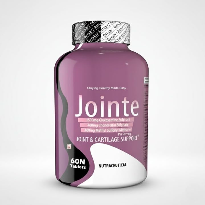 This supplement has been formulated to prevent degeneration restore Joint providing comfort in Age related, weight. Increased Joint Flexibility Mobility: These Powerful glucosamine chondroitin tablets help in the repair of joint structure and maintain Joint flexibility. Best Combination for Joint Support: This combination of Glucosamine Chondroitin MSM is essential for healthy joints. Glucosamine is naturally present as fluid around the joints. Chondroitin reduces friction. Maximum Strength to deliver Right dose:delivers the right dose of 1500mg Glucosamine per serving alongwith Chondroitin MSM. By just taking 2 tablets you get the daily required dosage while we need minimum 3 tablets of other brands. The 5 Way Complete Joint Solution: Jointe is a Complete joint solution and supports in all 5 signs of Joint Health like Mobility, Comfort, Flexibility, Strength Lubrication.