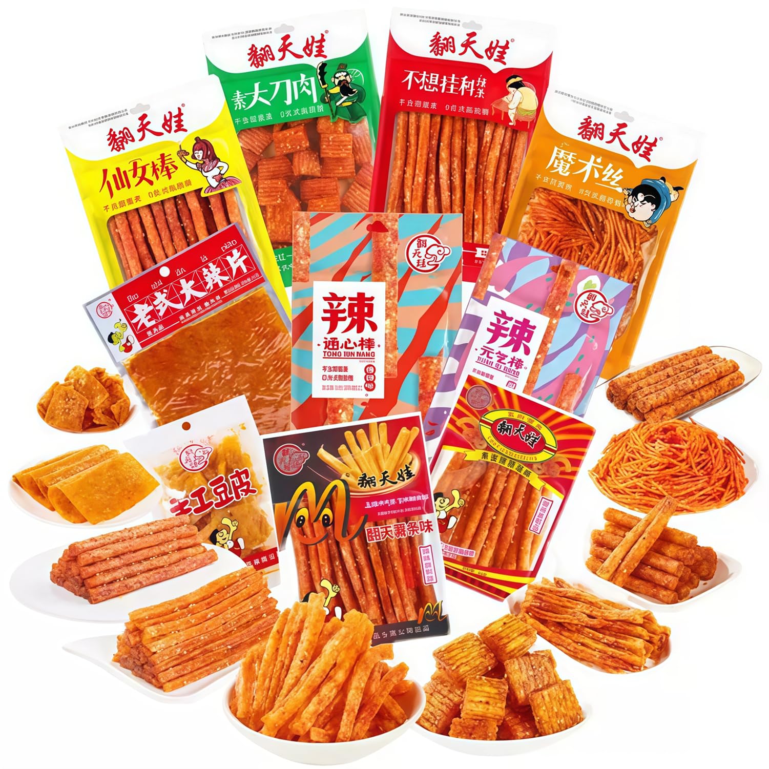 100 Plant-Based Crunchy Taste: Made with wheat flour, vegetable oil, edible salt, white sugar, chili powder, and spices, these vegan snacks are perfect for sharing. ? Fun and Easy to Share: These hand-tearable strip snacks are ideal for families, parties, carnivals, or surprise lunches. ? Production Date: The date on the packaging is the production date! Shelf Life: 5 months. This product is available in individual packs and combination packs to best suit our customers' tastes. If you're trying it for the first time, we recommend choosing the mildly spiced option. If you prefer spicy snacks, you can opt for a 10-pack combination pack, which is sure to satisfy your taste buds. Classic Chinese Latiao - TikTok Viral Gift. Rich and enticing spices - Carefully selected ingredients, reminiscent of the classic taste of Chinese snacks.